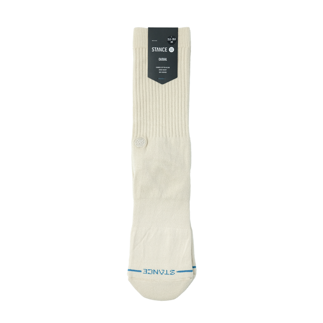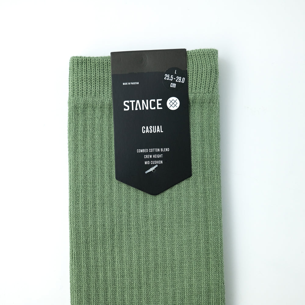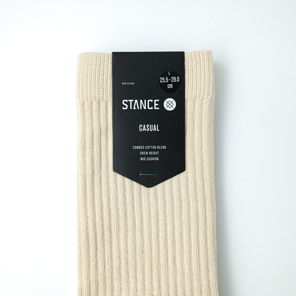 シンプルなデザインのクルー丈リブソックス。