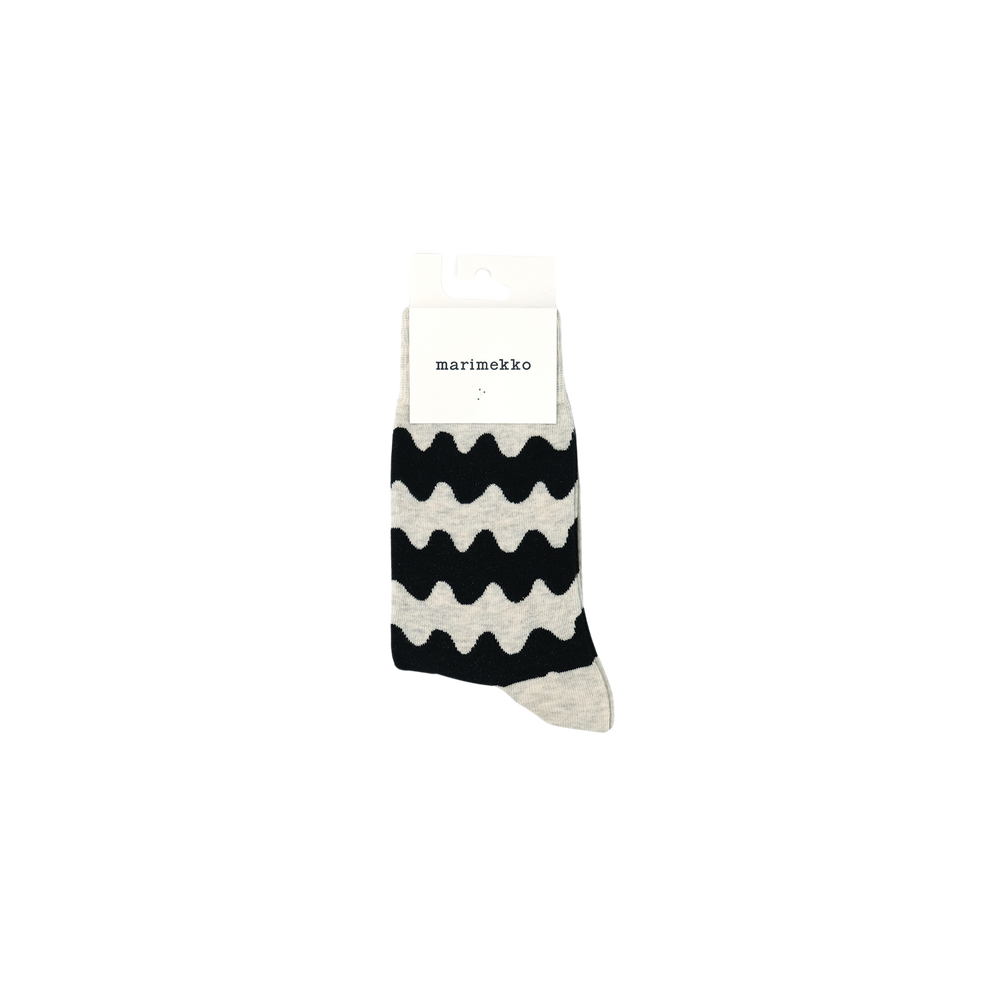 グレーのベースに波模様をあしらった遊び心を感じるクルー丈ソックス。