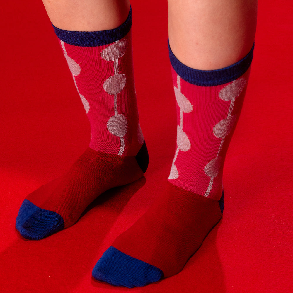 コロンとしたフォルムのバブル柄をデザインしたクルー丈ソックス。