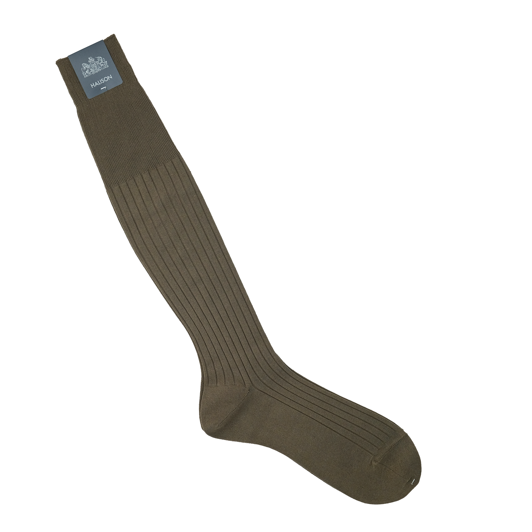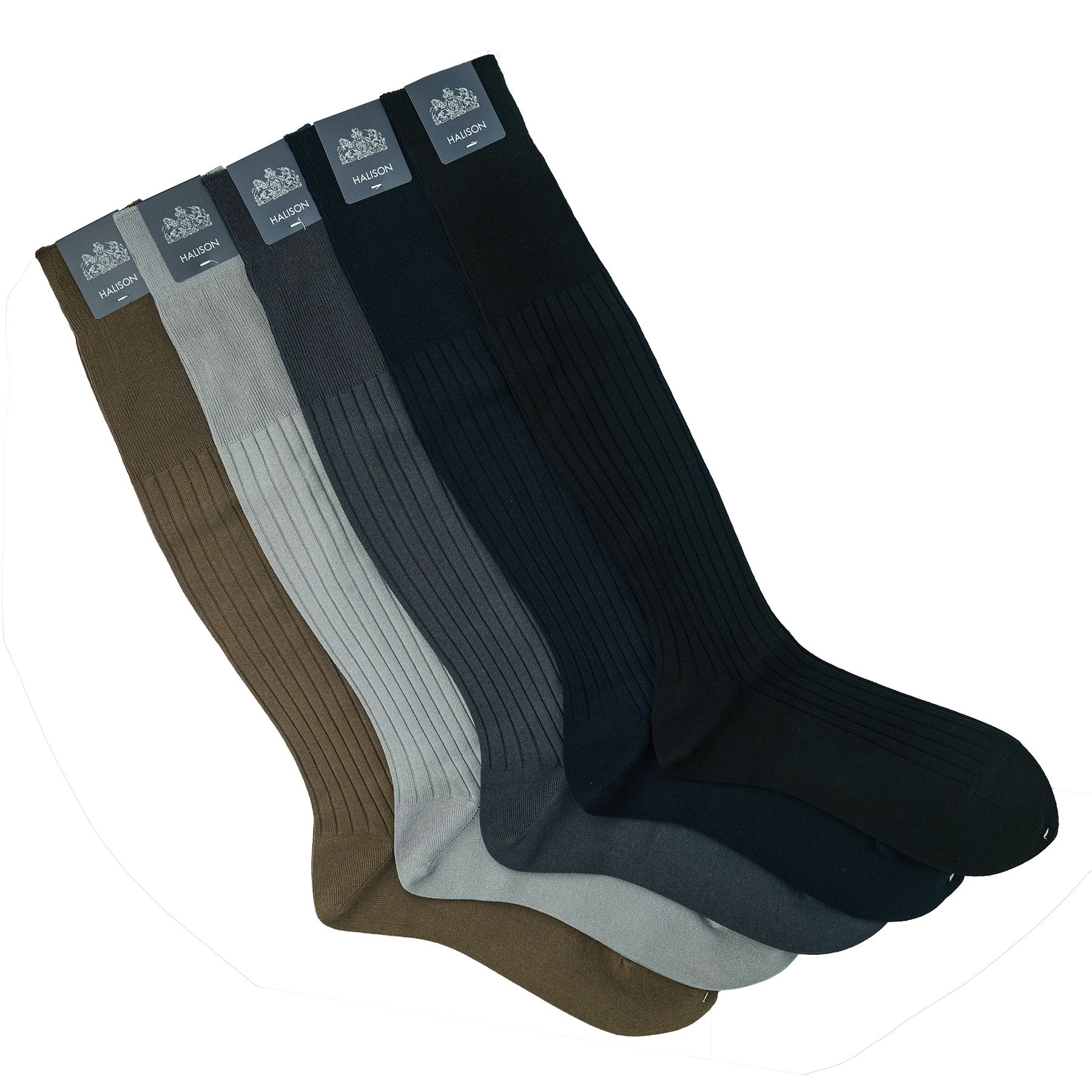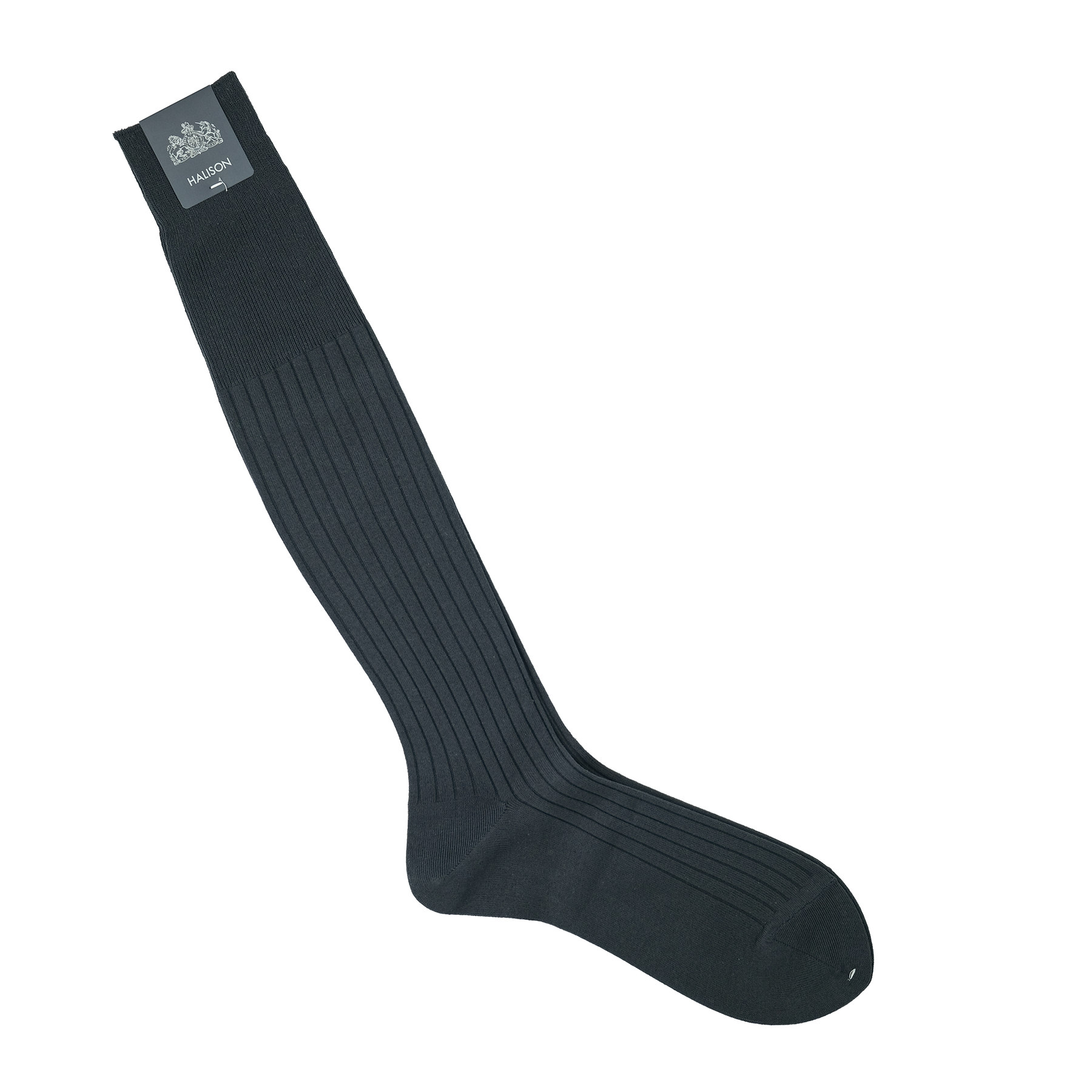 綿麻のクレープ加工糸を使用したリブロングホーズ。