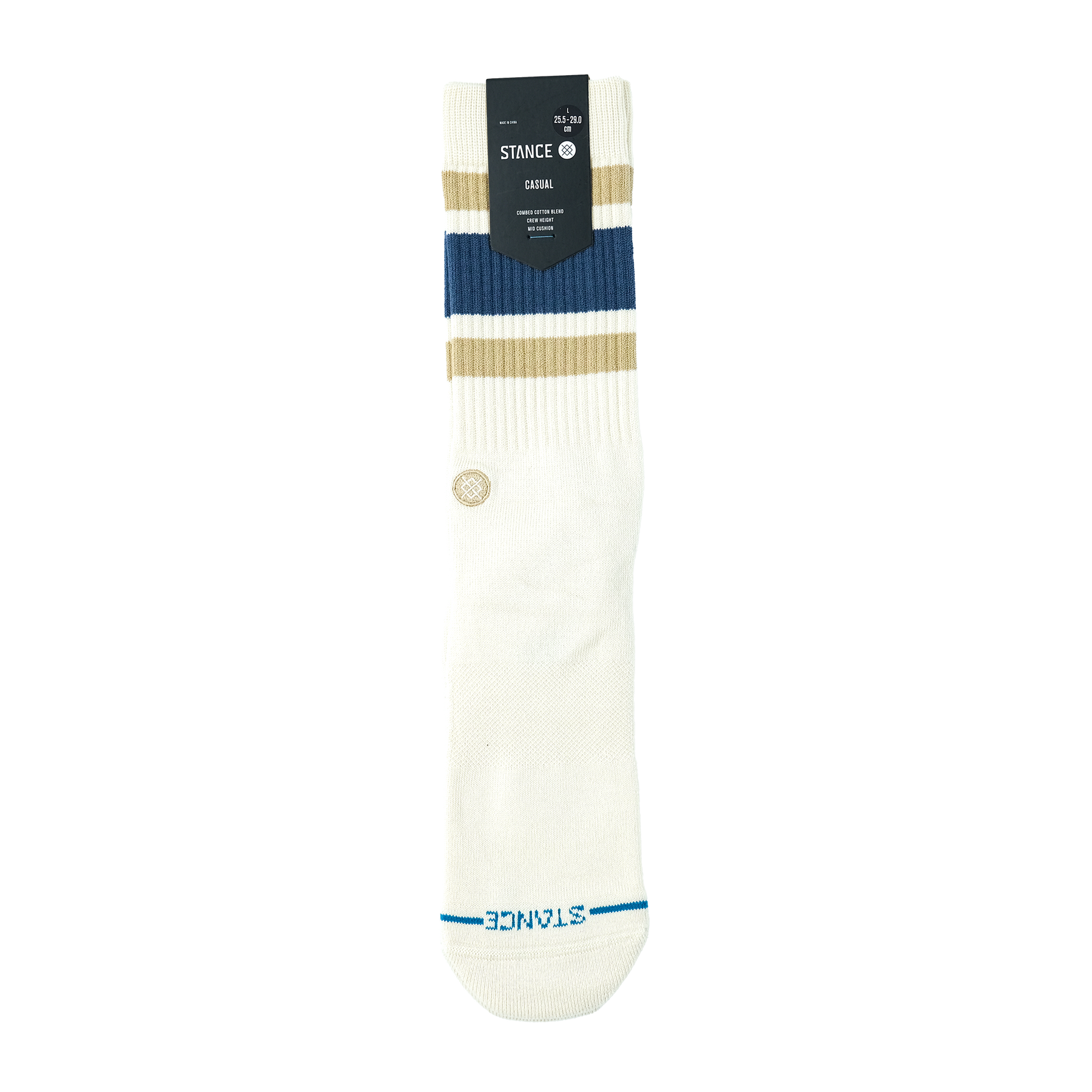 アイボリーベースにブルーとベージュのラインを効かせたスポーティーなデザインで、足元にさりげないアクセントをプラスします。
