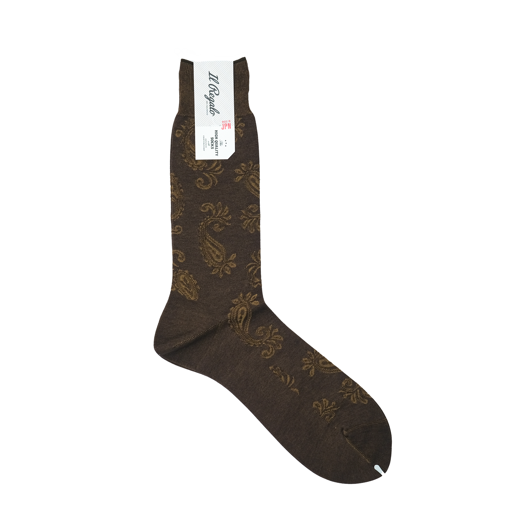 シルクのような光沢感と陰影でペイズリー柄を描いたソックス。