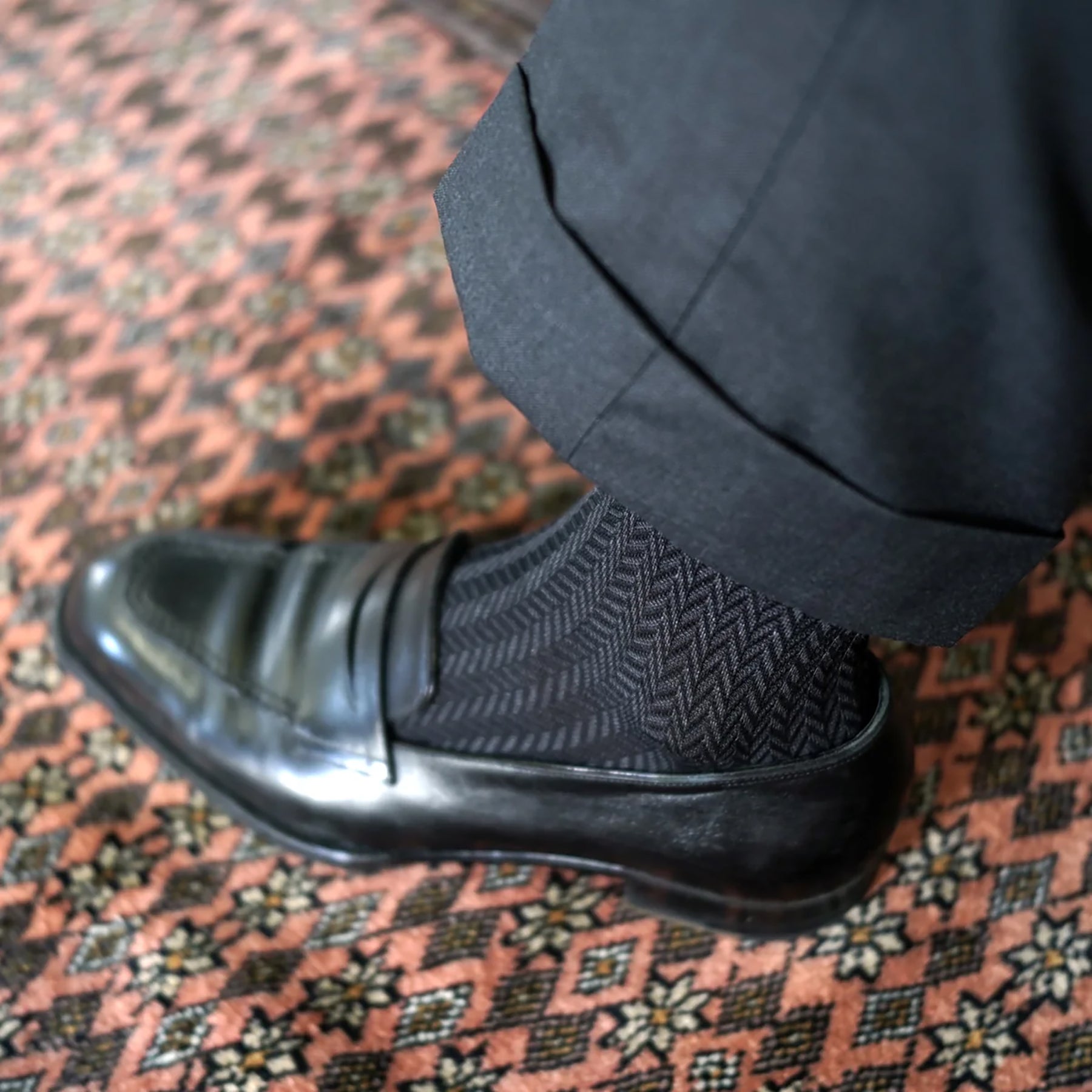 クラシカルなヘリンボーン柄のロングホーズ。