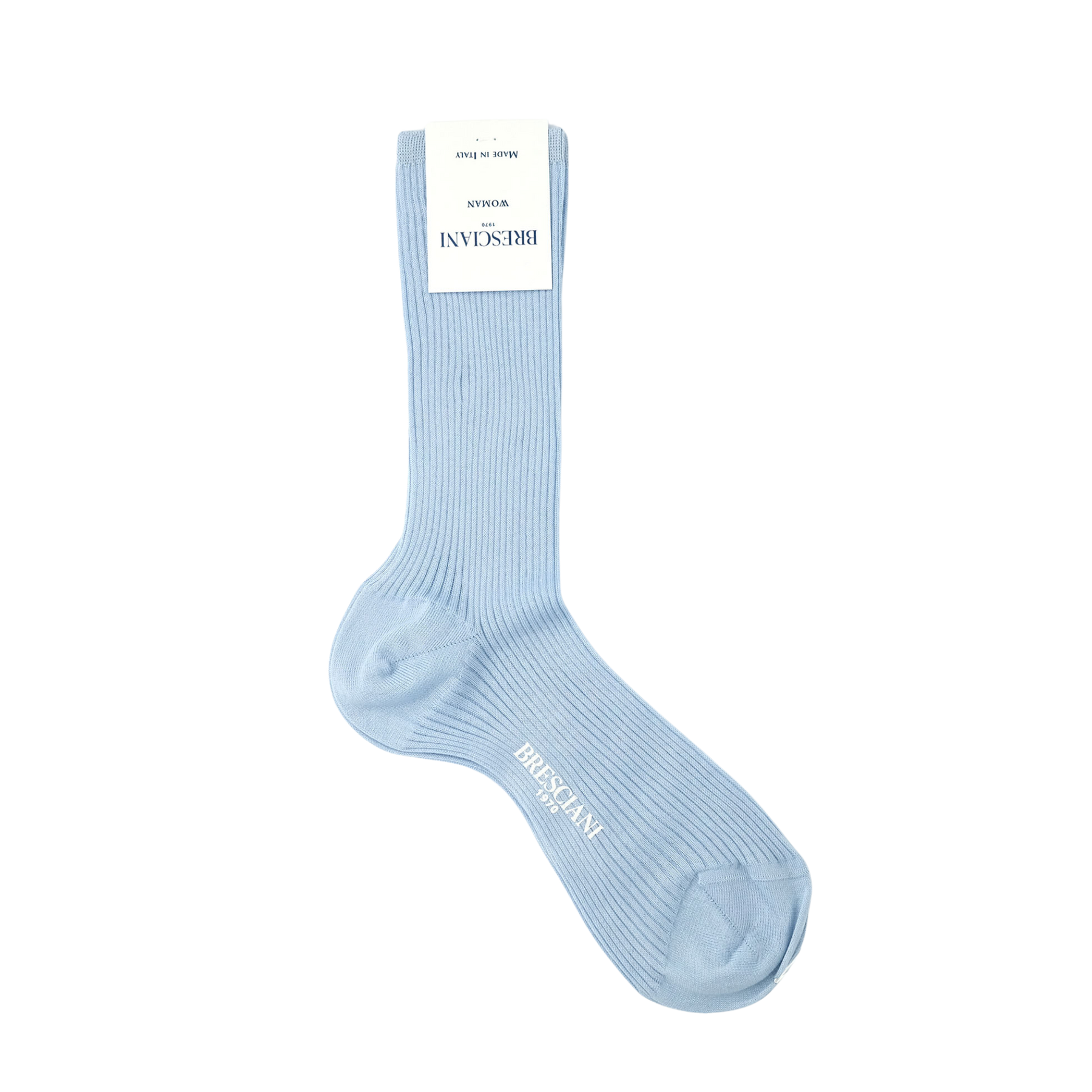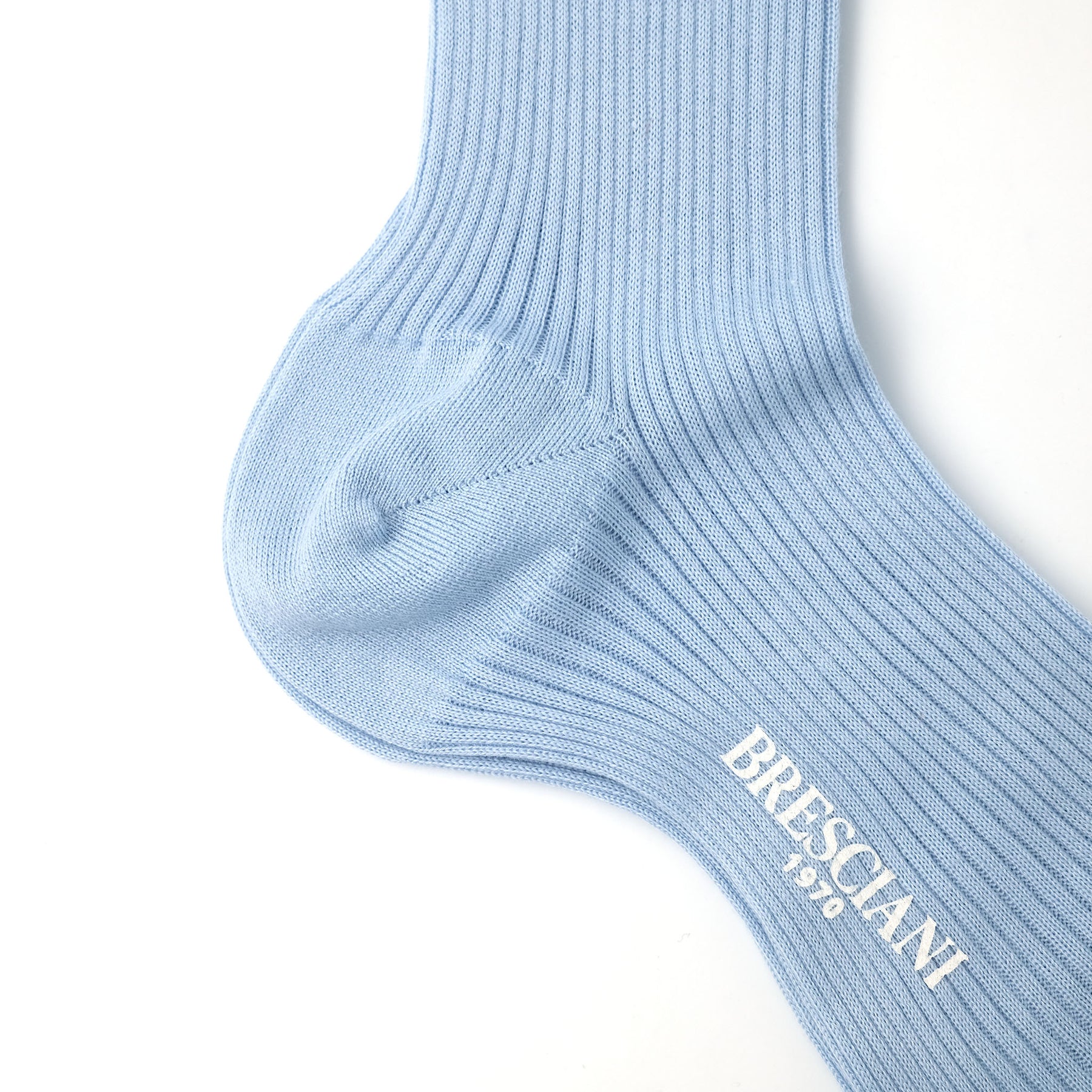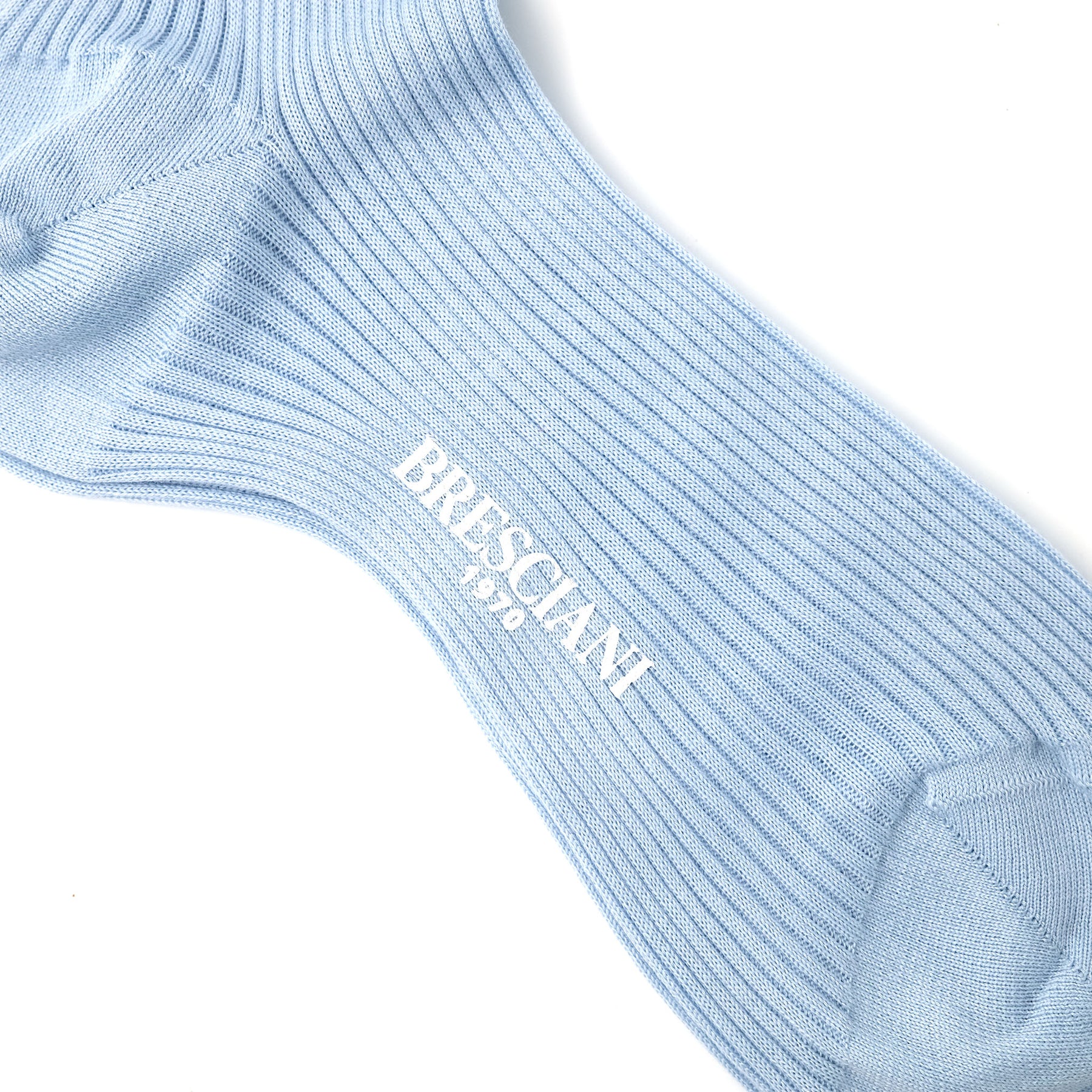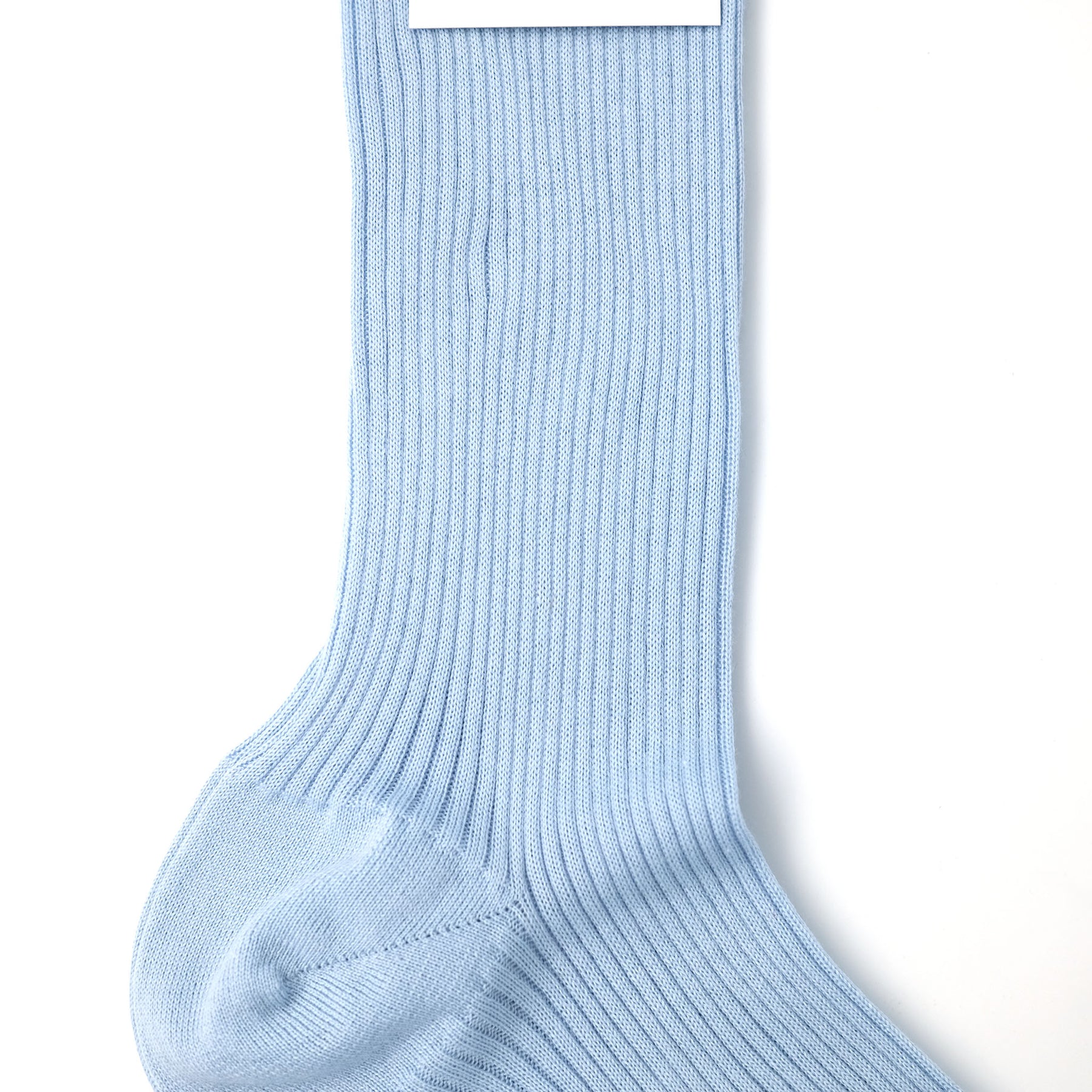 爽やかなライトブルーのリブショートソックス。21cm丈。