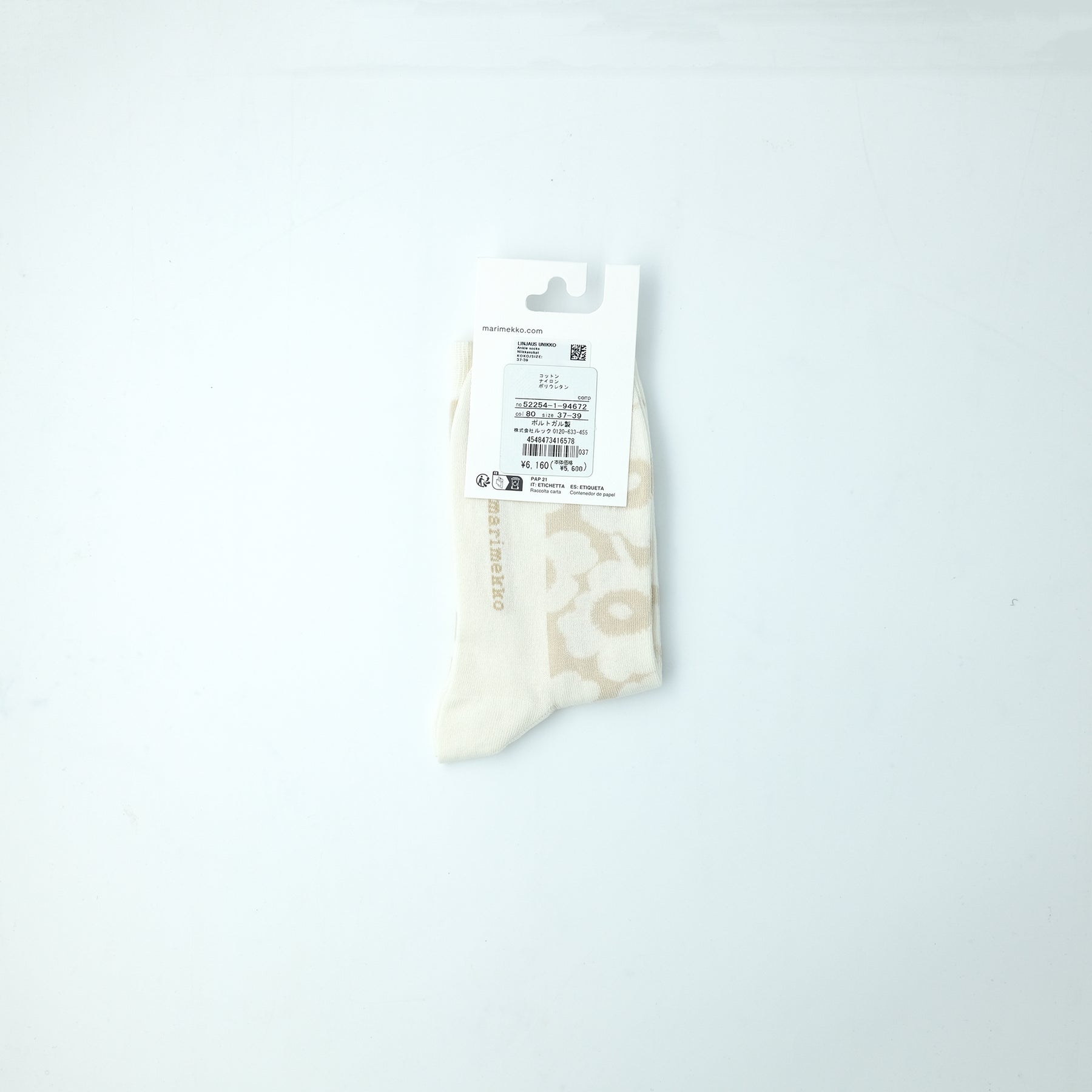marimekko定番のウニッコ柄をあしらった、クルー丈ソックス。