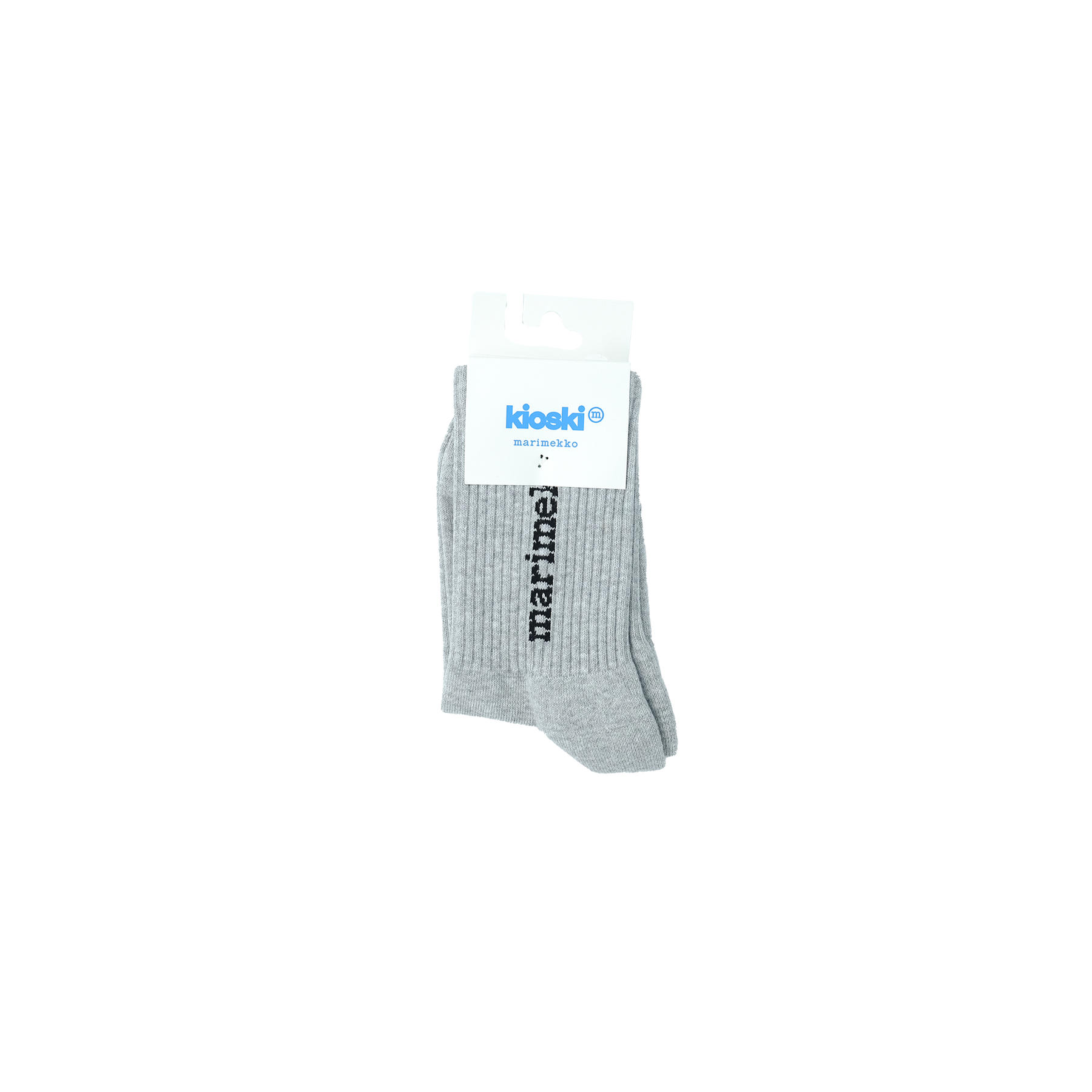 marimekkoのロゴをあしらった、クルー丈リブソックス。