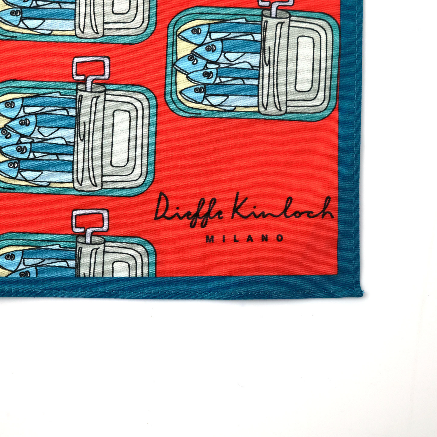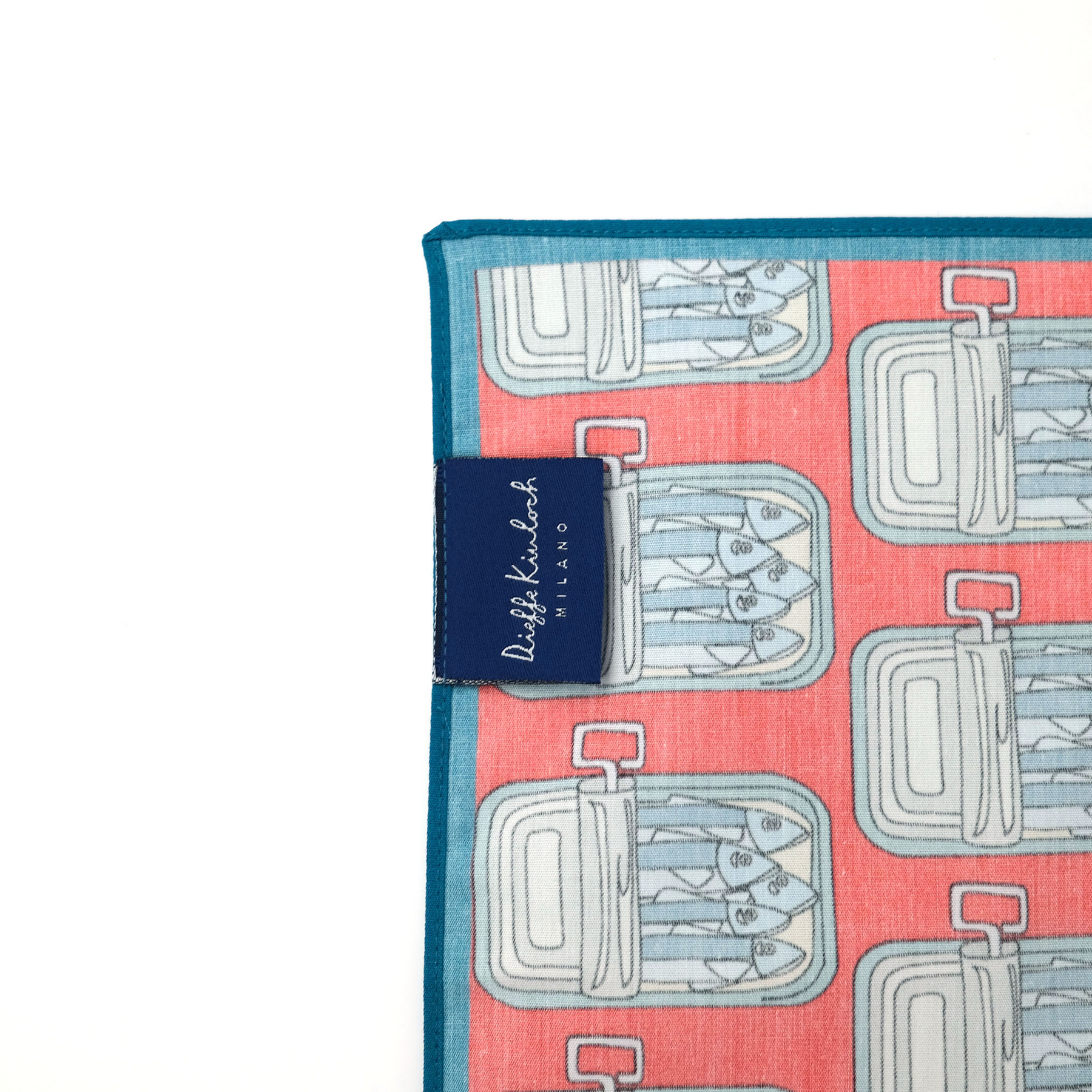 PORTUGALコレクションの "CANNED SARDINES AO"柄をデザインしたハンカチーフ。