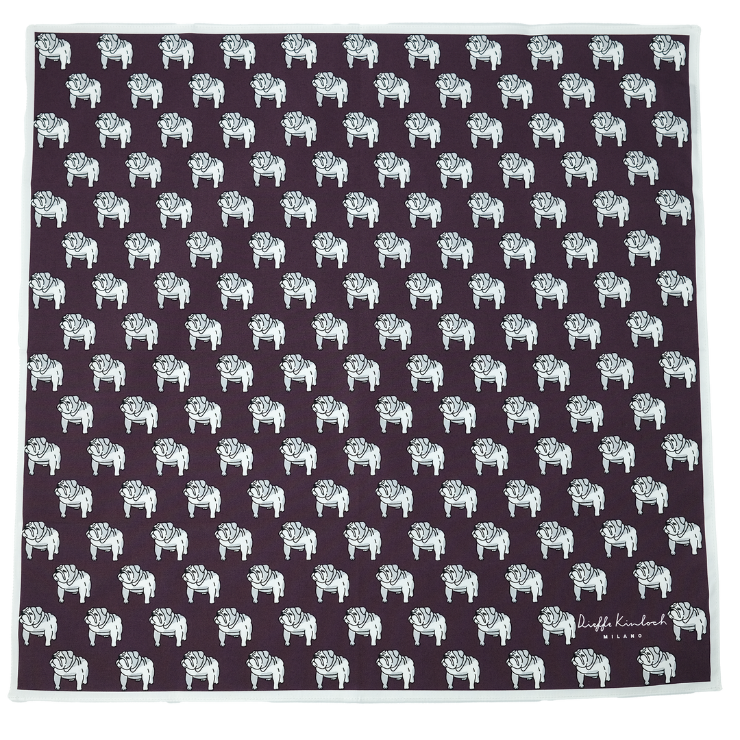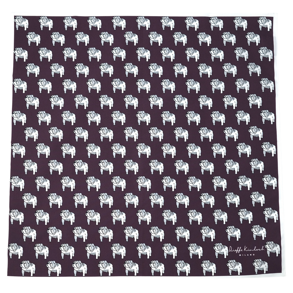 LONDON "BULLDOG ALL OVER" コットン ハンカチーフ (クラシック) DARK PURPLE×WHITE