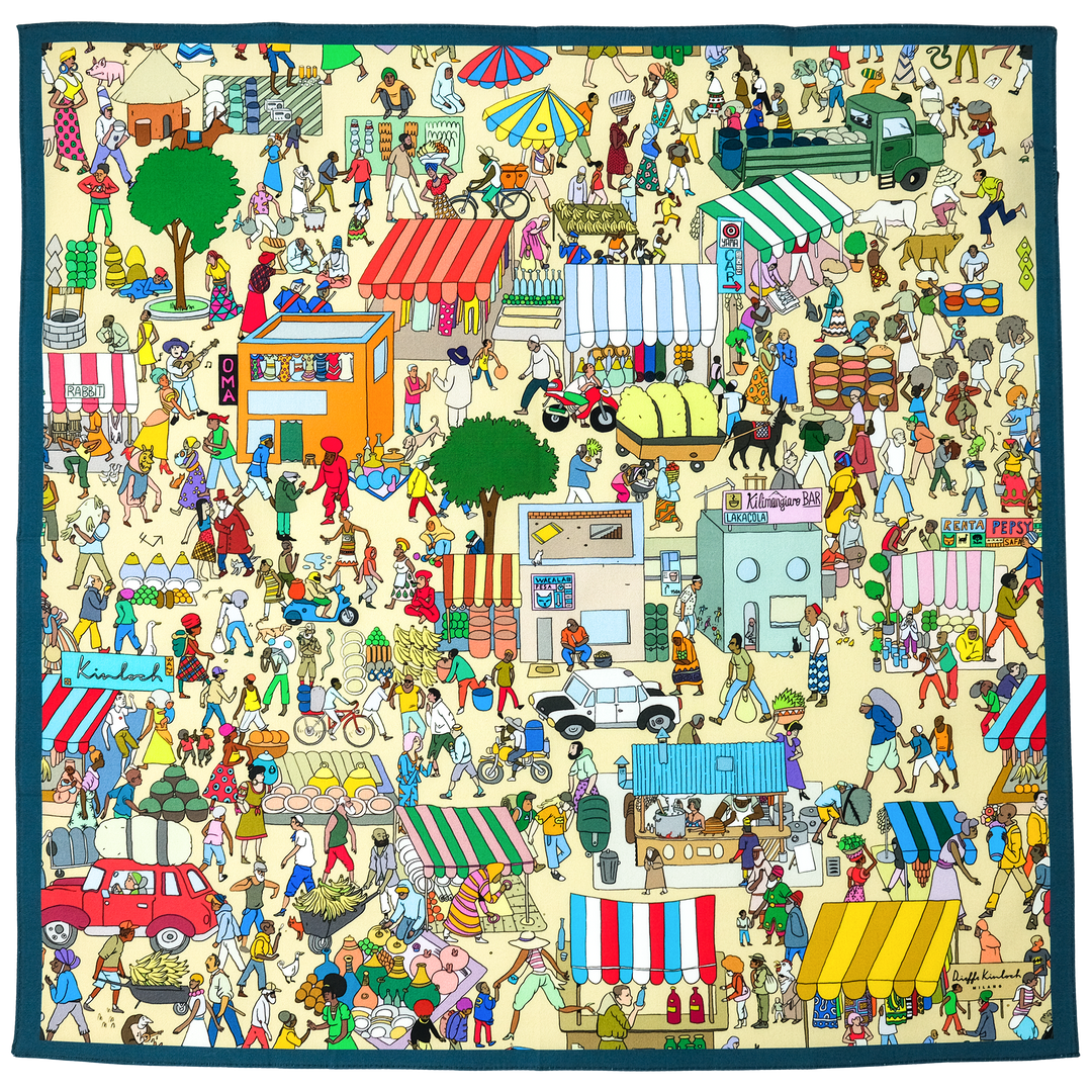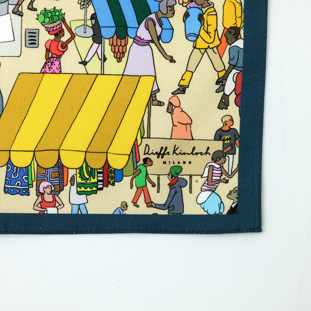 TANZANIA "KARIAKOO MARKET " コットンハンカチーフ (クラシック) BEIGE×BLUE