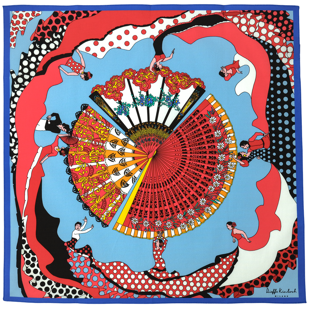 MADRID ”FAN DANCE” コットンハンカチーフ (クラシック) RED×BLUE