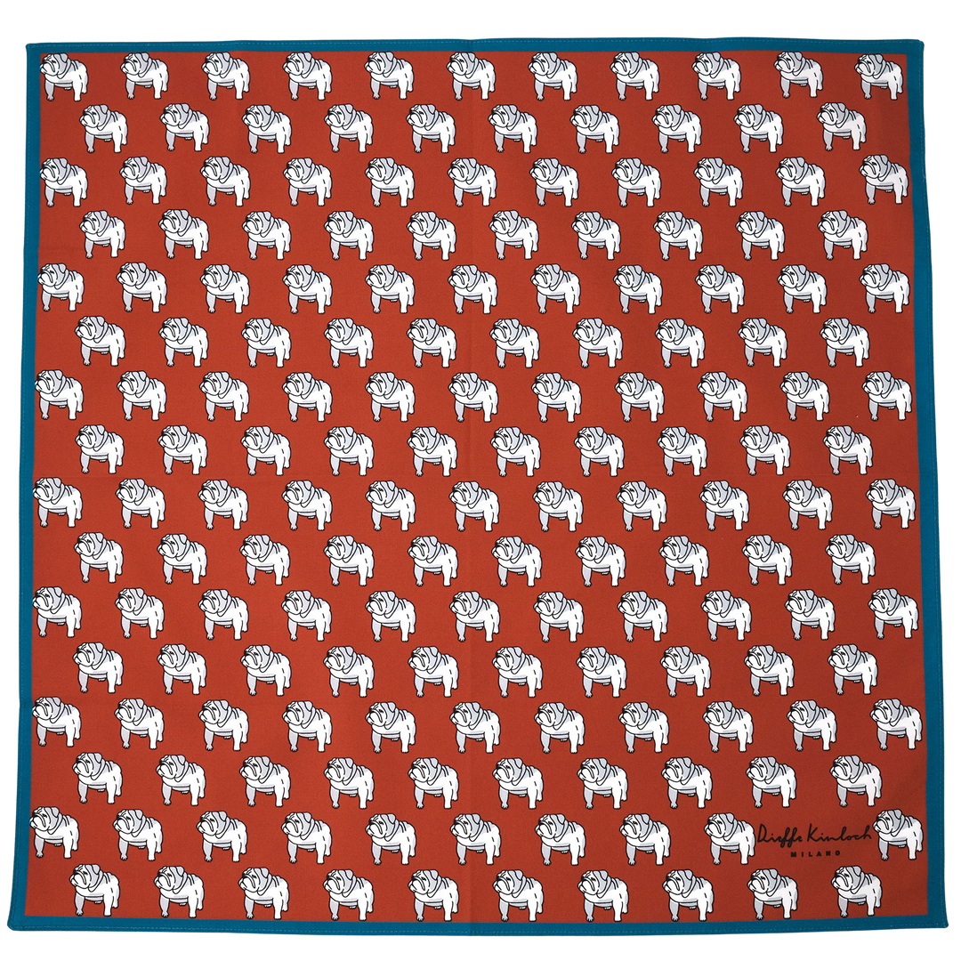 LONDON "BULLDOG ALL OVER" コットン ハンカチーフ (クラシック) BROWN×DARK BLUE