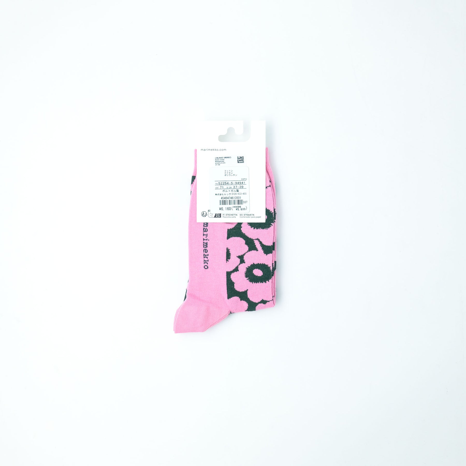 marimekko定番のウニッコ柄をあしらった、クルー丈ソックス。