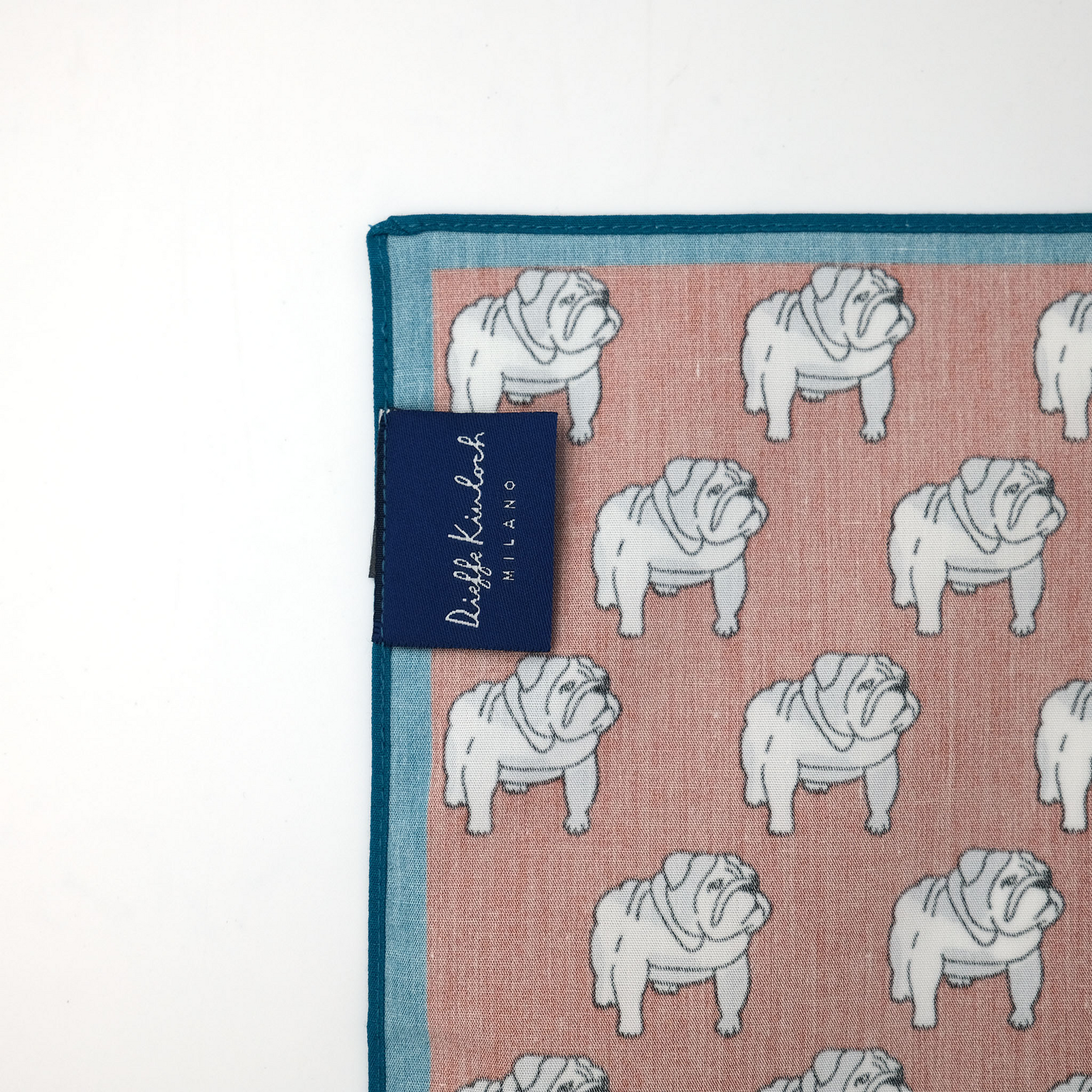LONDONコレクションの "BULLDOG ALL OVER"柄を落とし込んだハンカチーフ。