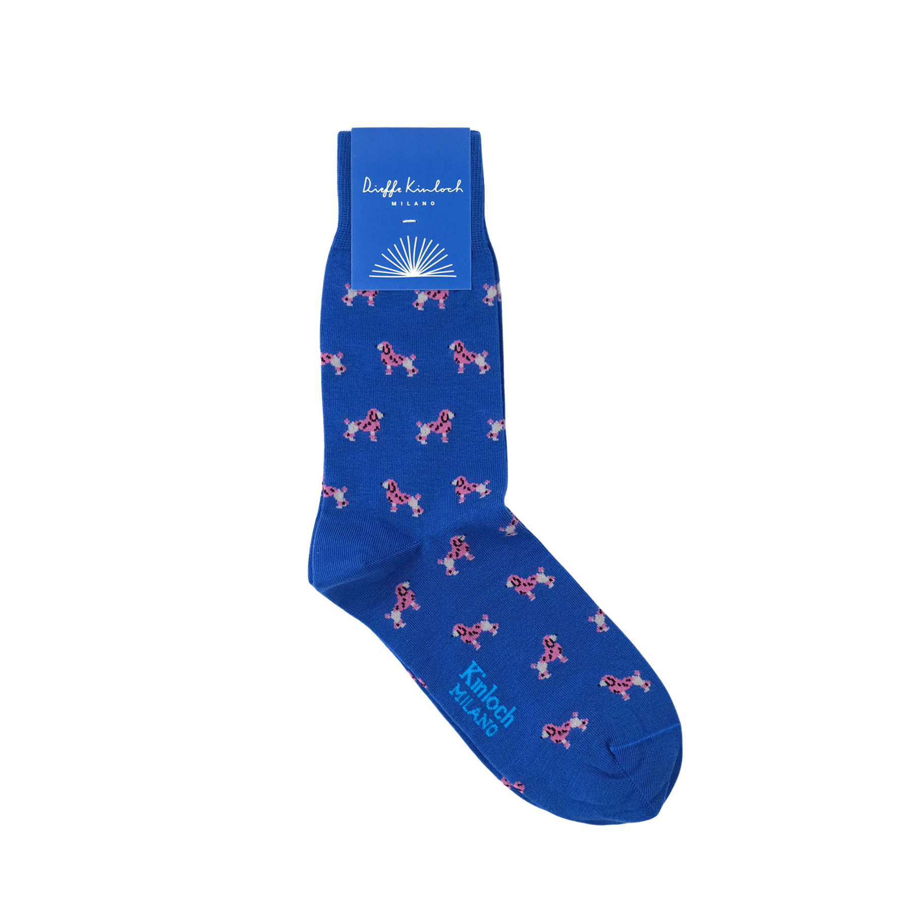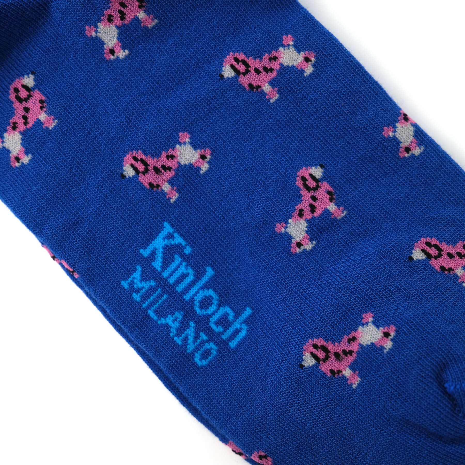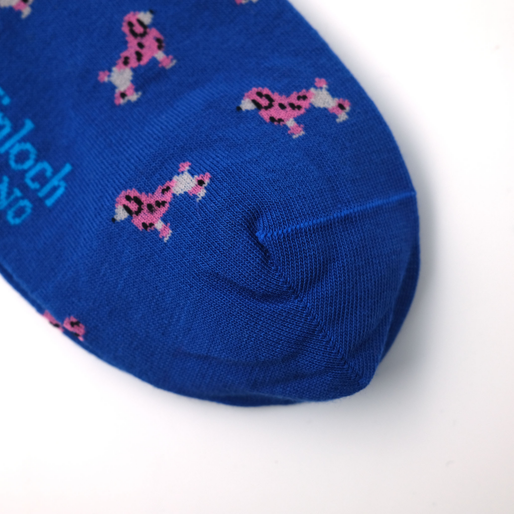ビビットなブルーにピンクのプードルが可愛らしく映える一足です。