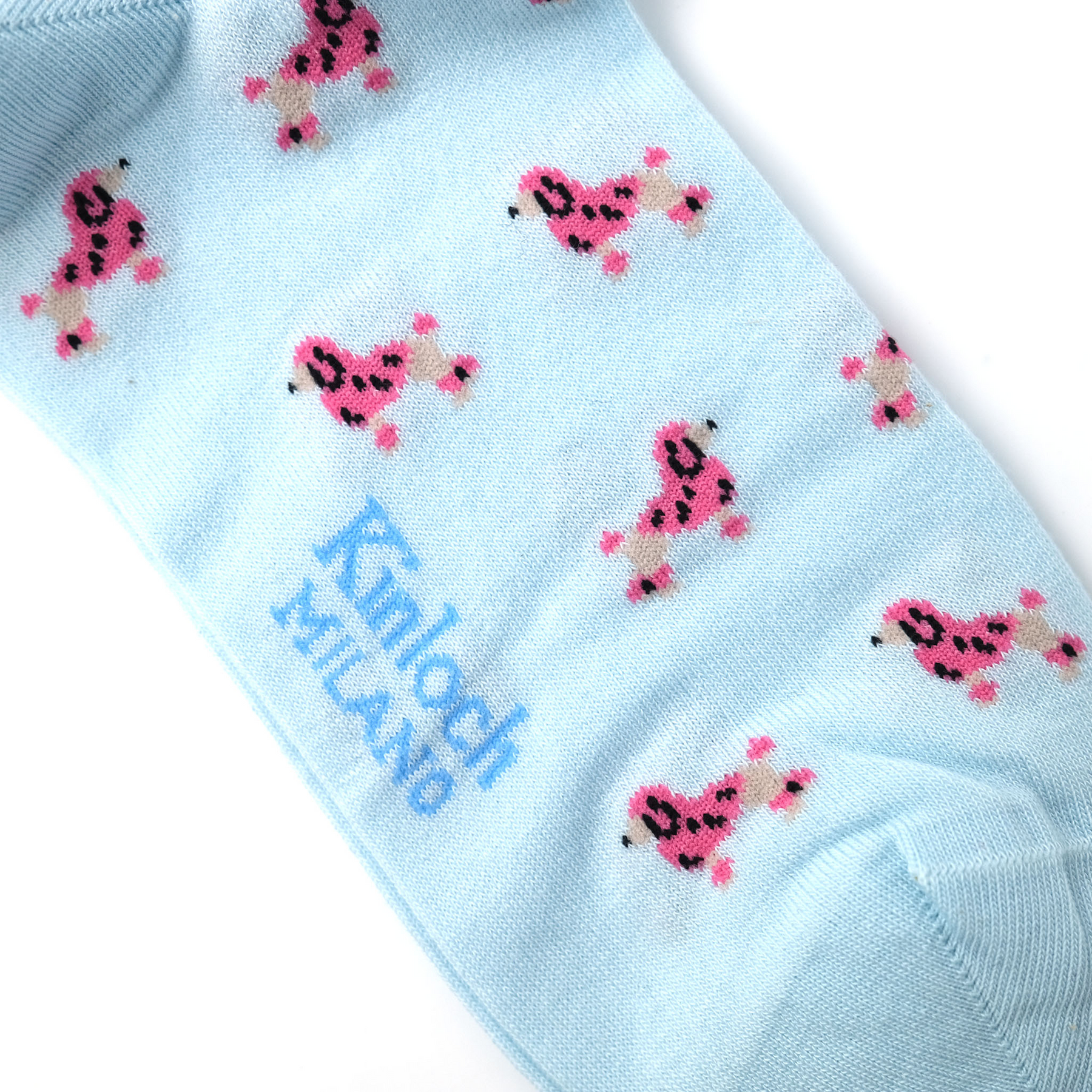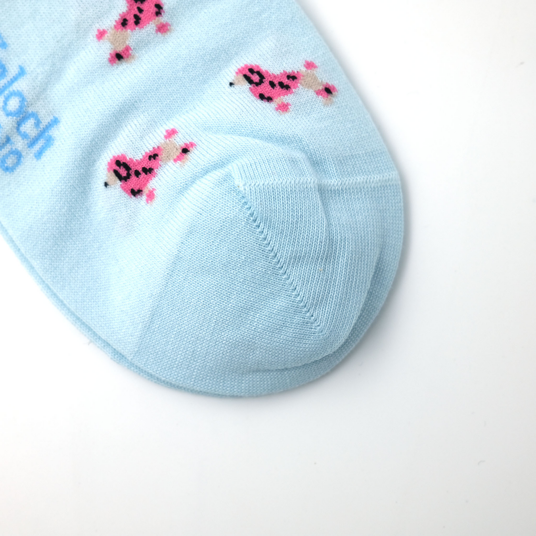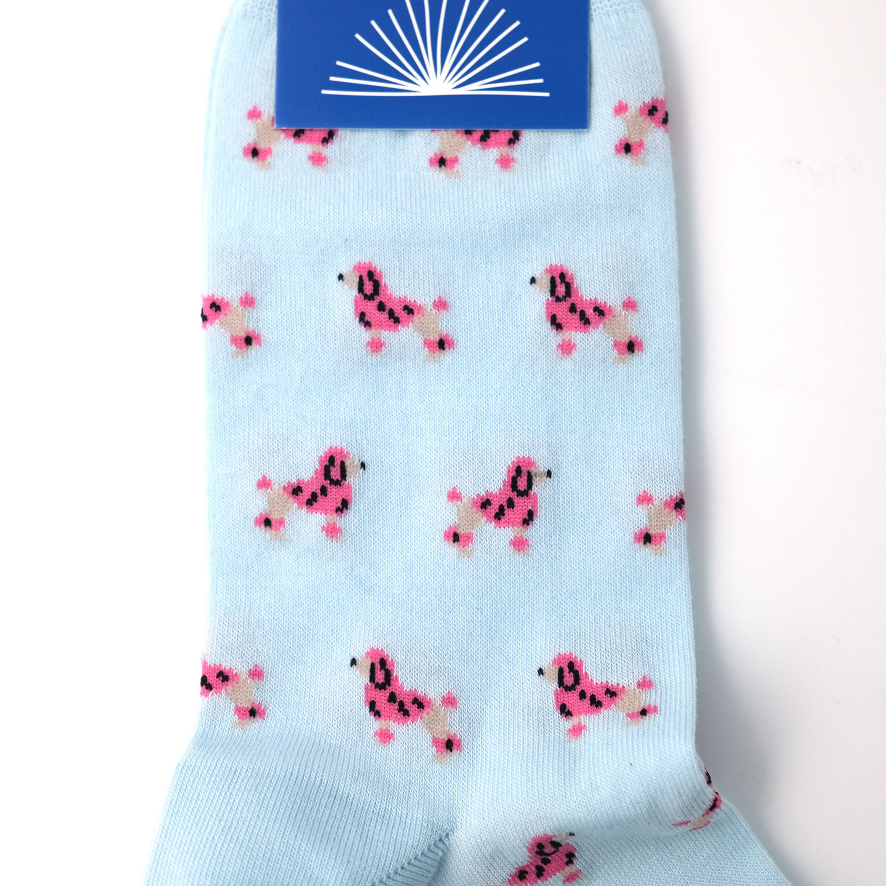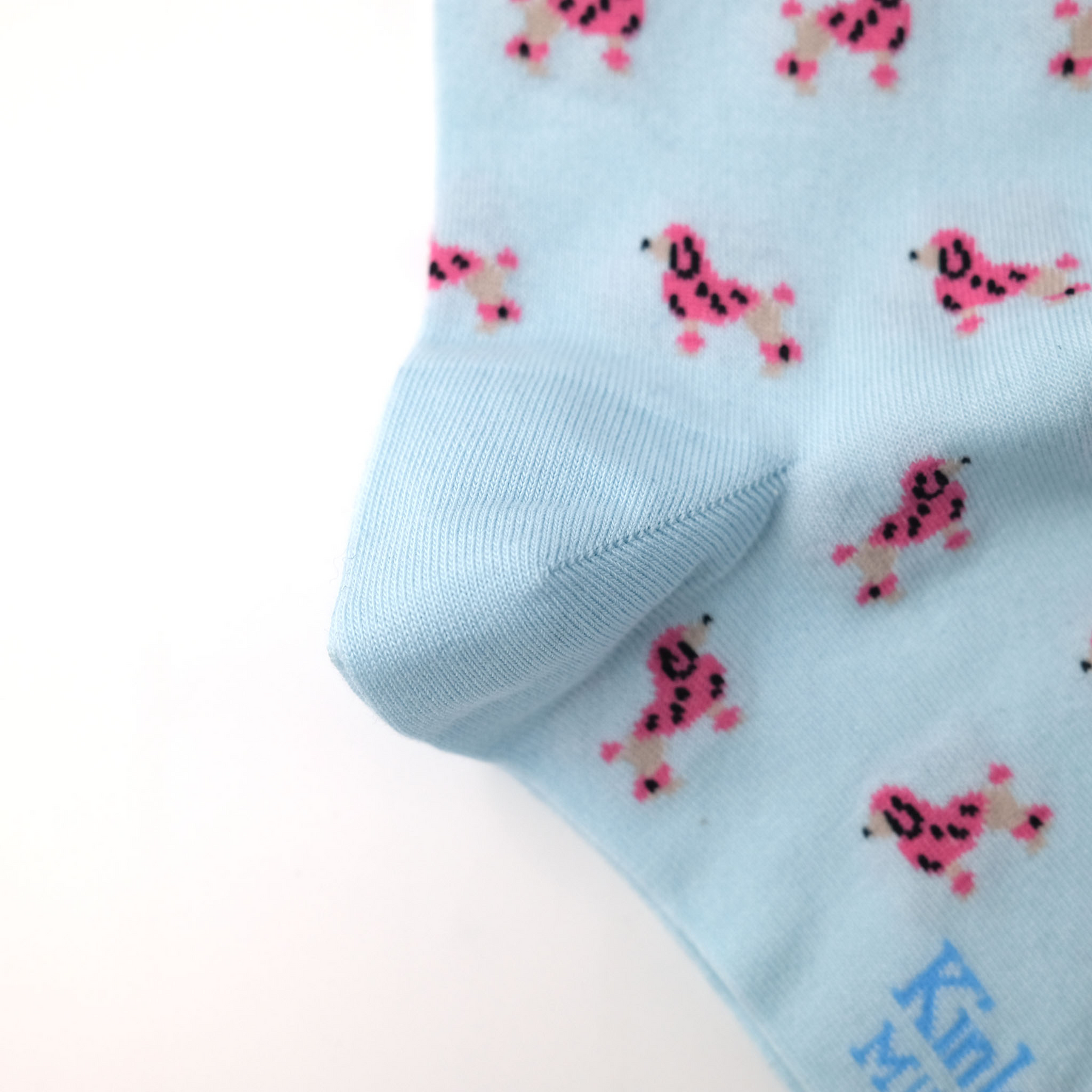 サックスブルーにピンクのプードルが可愛らしく映える一足です。