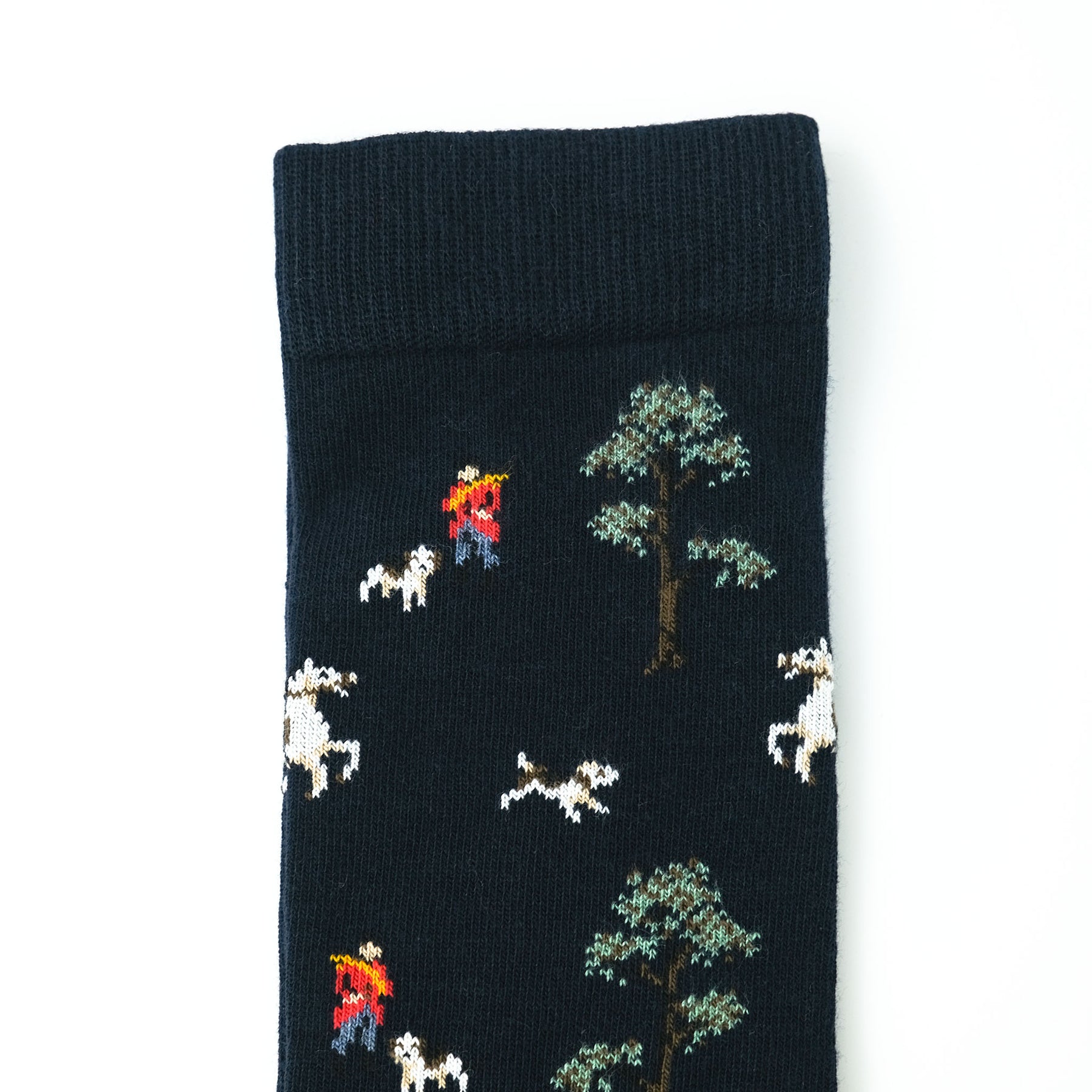 早朝の散歩をテーマにした、クルー丈ソックス。