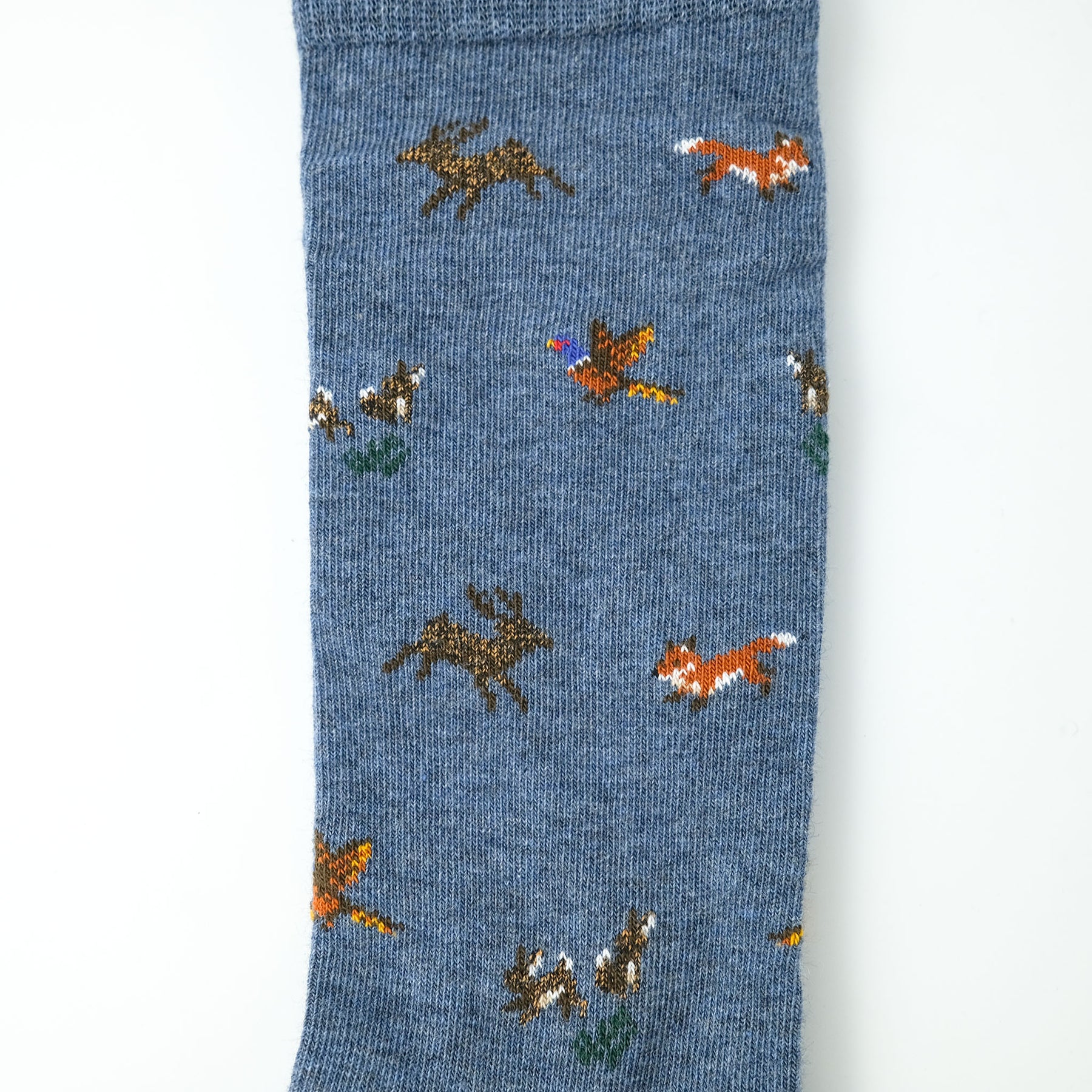 森に生息する野生動物たちをモチーフにした、クルー丈ソックス。