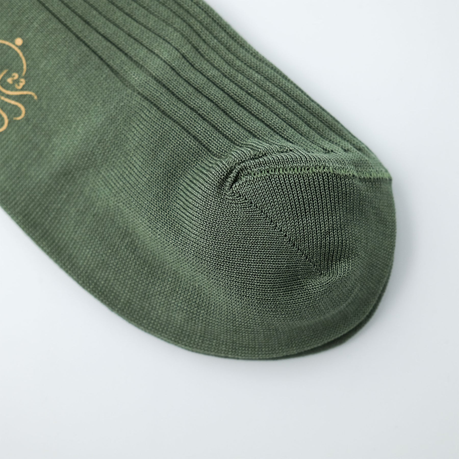 素材はコットンとナイロン混のさらっとした肌触り。細幅のリブ編みが心地よいフィット感をもたらします。