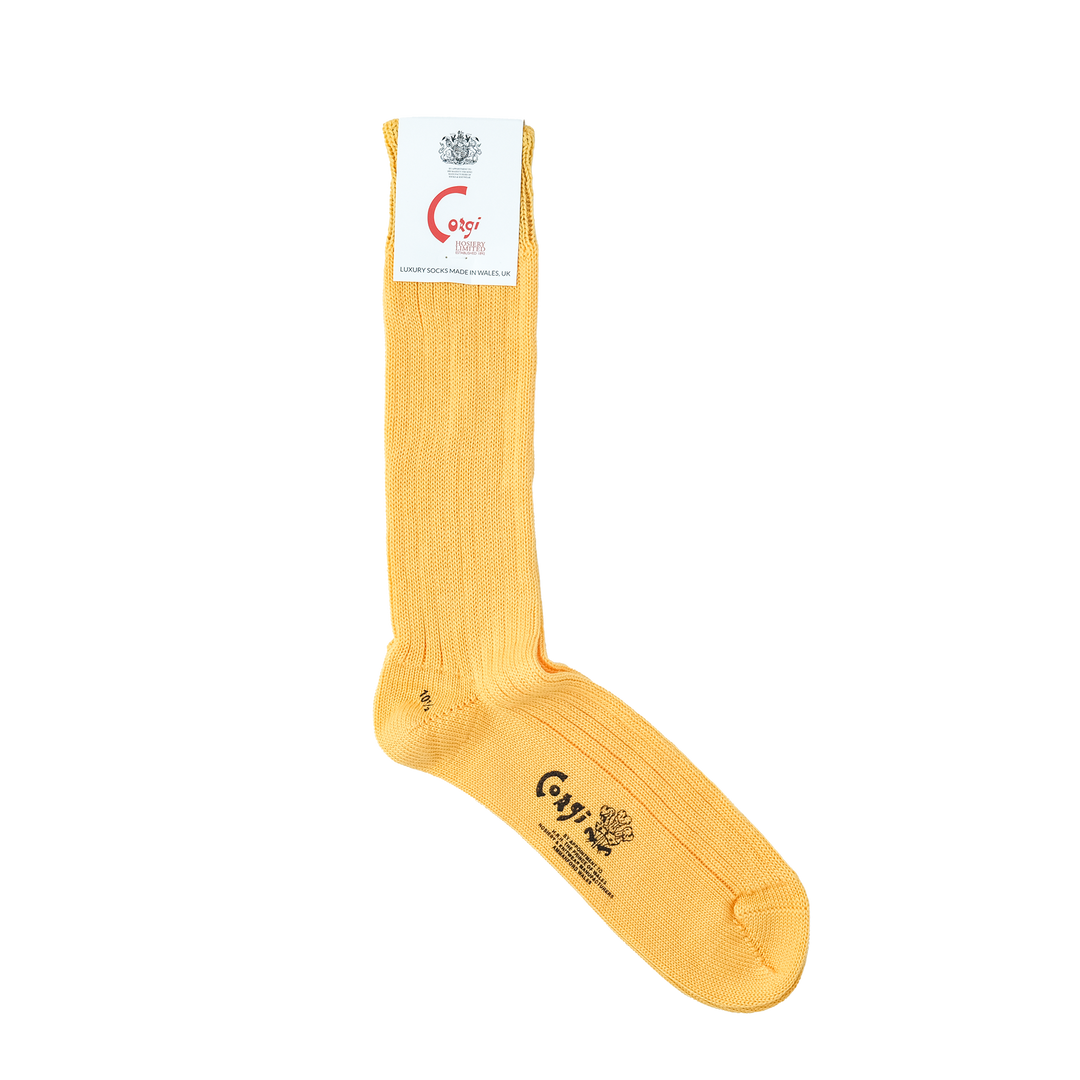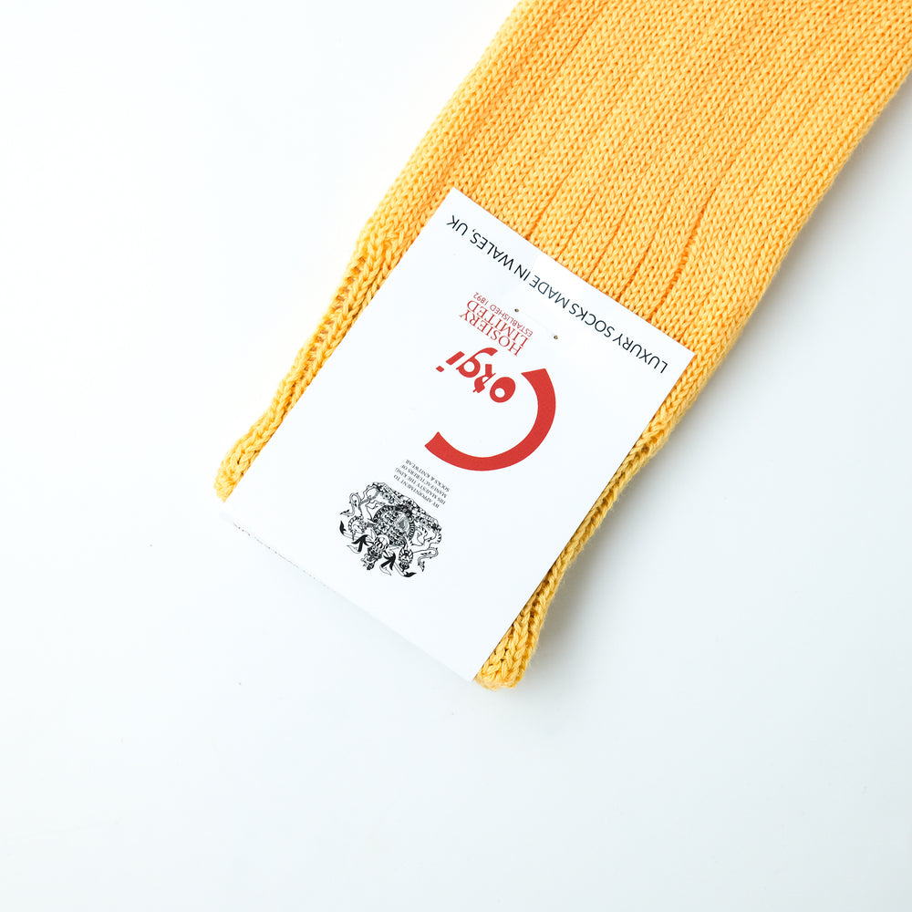 【MENS】MERCERISED COTTON 3×1 RIB SOCKS LIGHT YELLOW