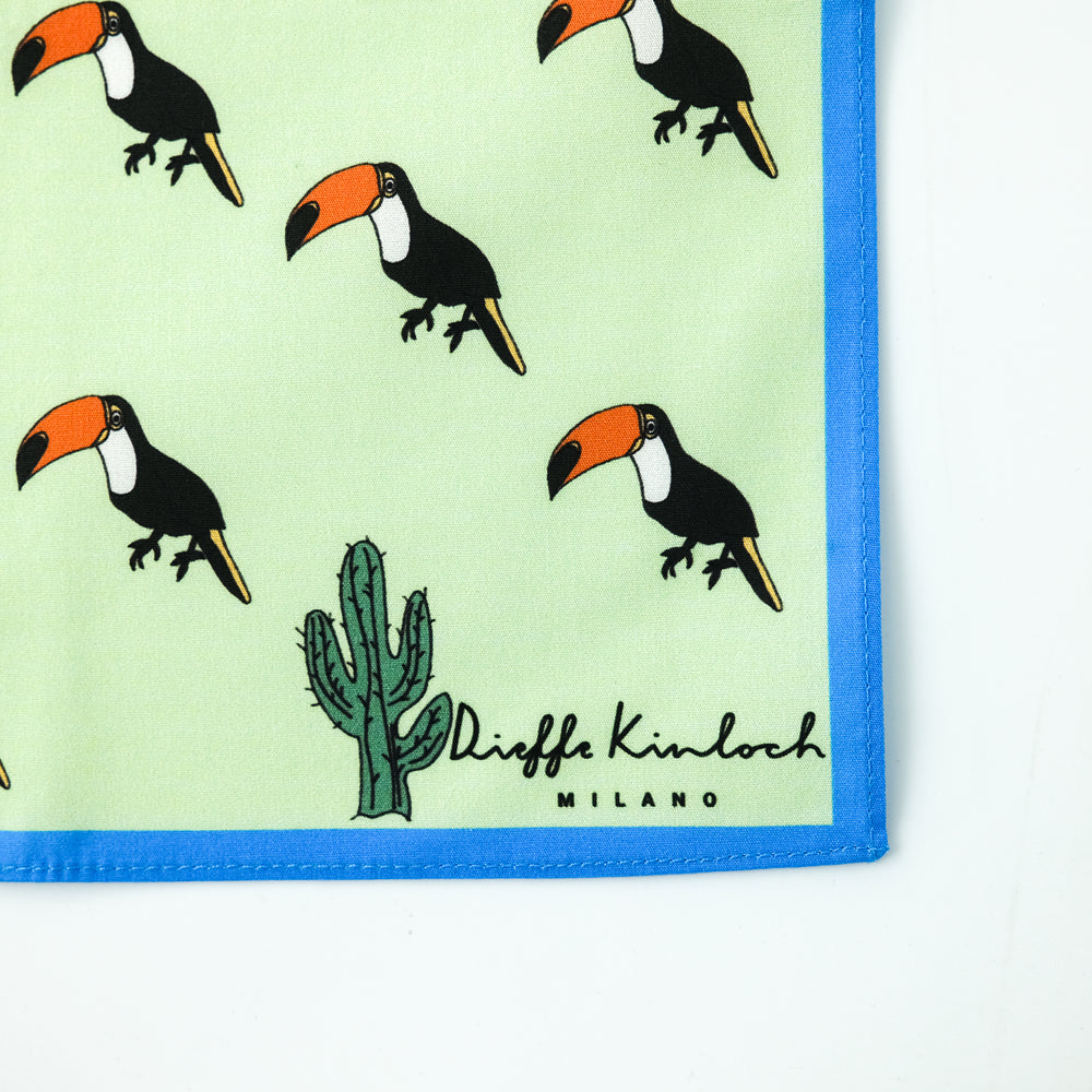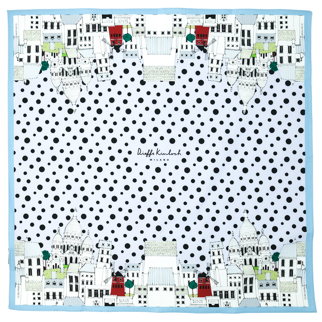 Dieffe Kinloch(ディエッフェ・キンロック)は2013年にイタリア・ミラノでスタートしたブランド。瀟洒で遊び心あるモチーフのシルク製品が有名。ポケットチーフ、ハンカチーフ、スカーフのほか、柄を忠実に再現したソックスも人気。