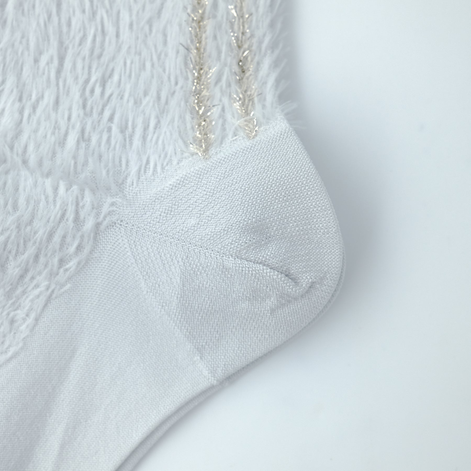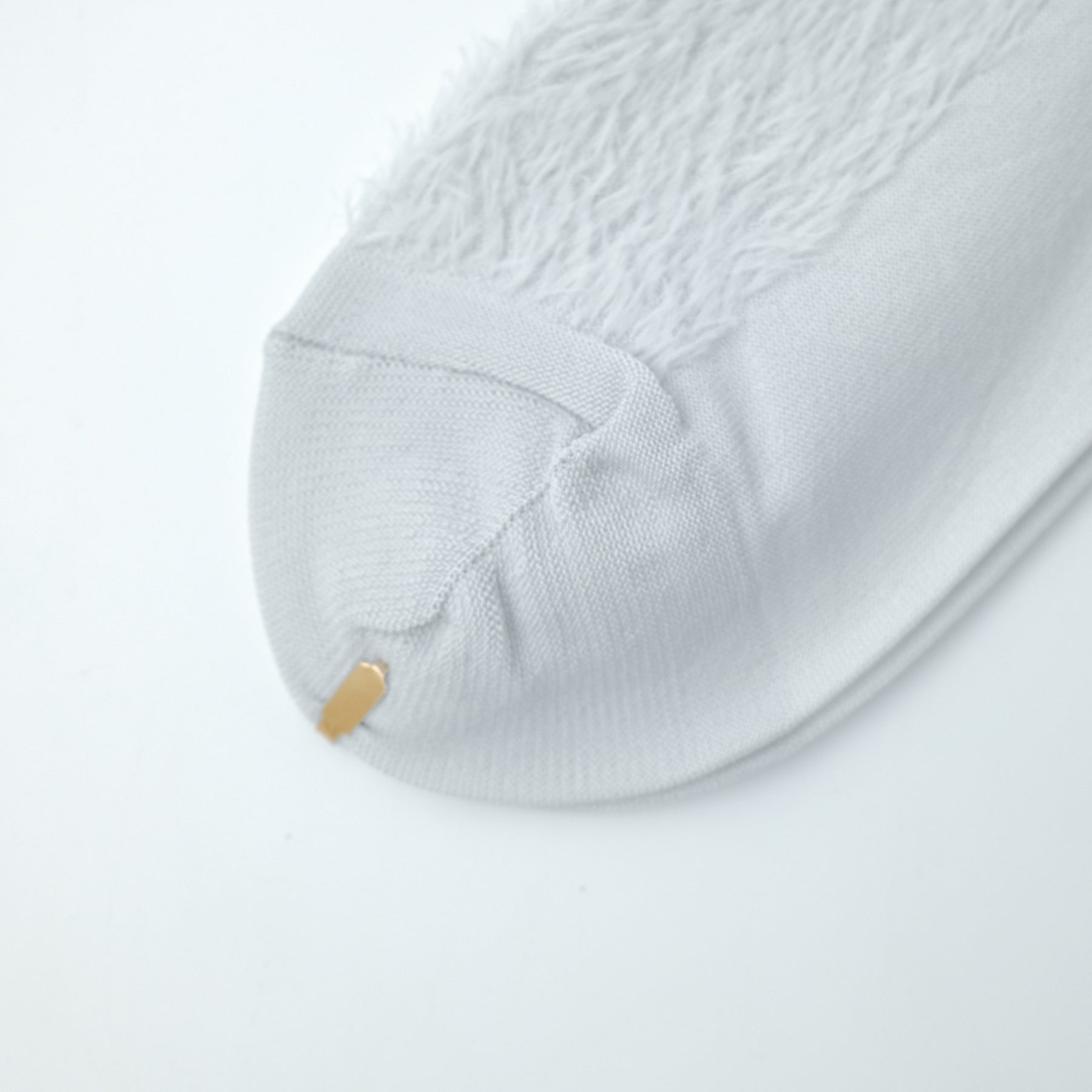 ファーにきらめくグリッターラインを添えたクルー丈ソックス。