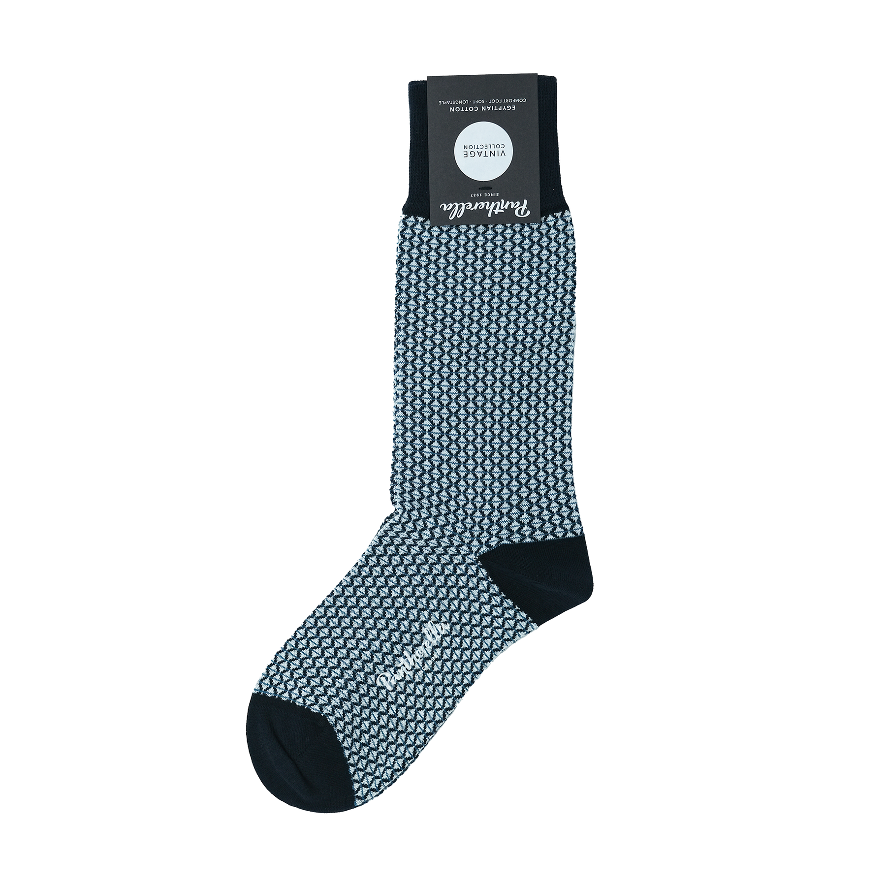 ダイヤモンド柄のジャガード織で仕上げたソックス。