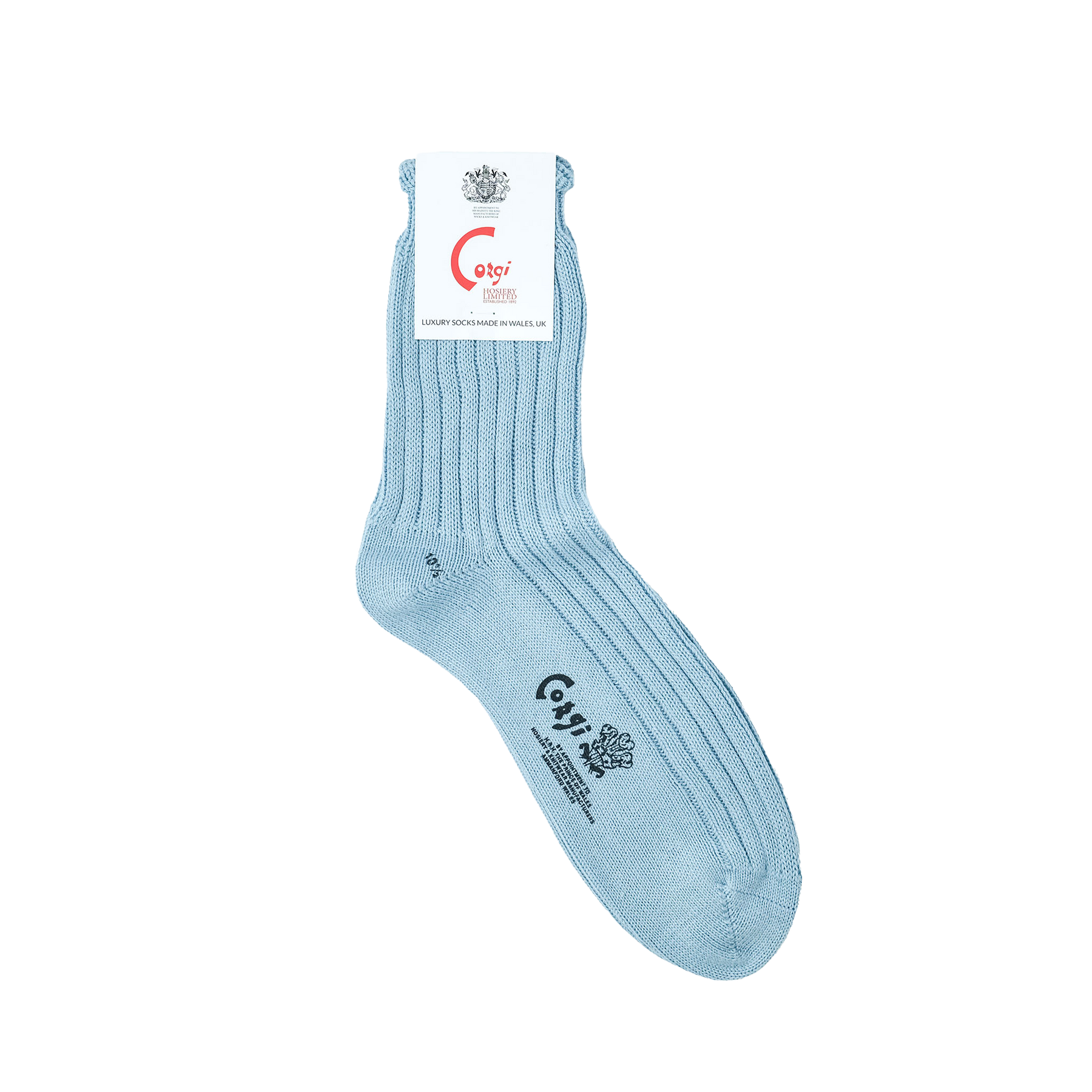 【MENS】SOFT COTTON 5×1 RIB SHORT SOCKS LT.BLUE