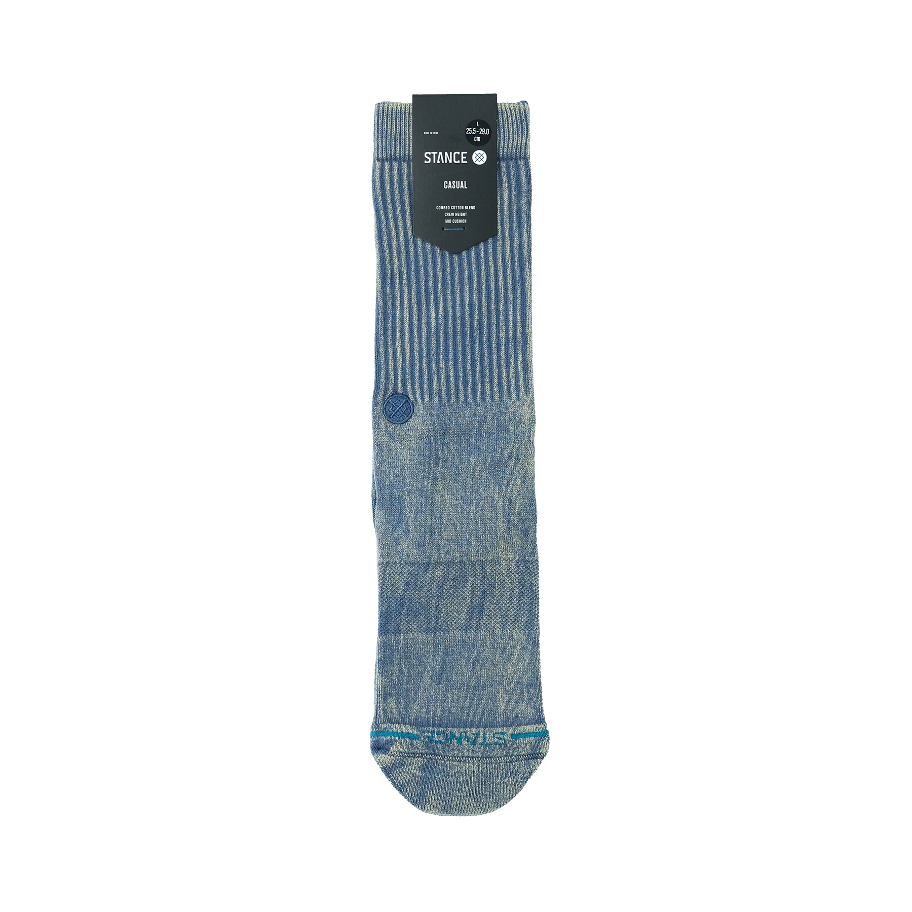 染め加工ならではの奥行きある風合いが魅力のクルー丈リブソックス。