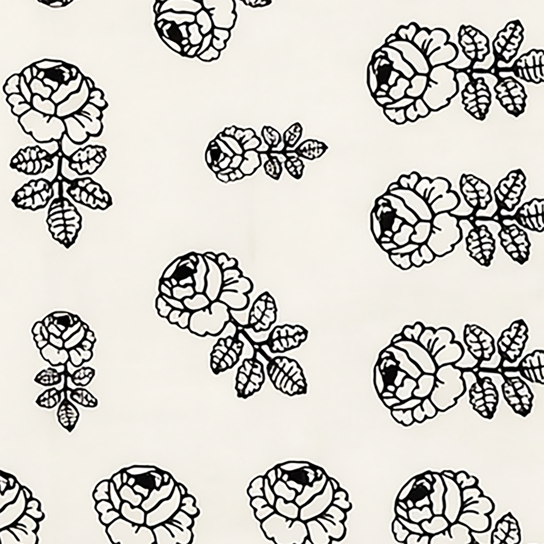 オフホワイトをベースに、ウェディングローズ柄をあしらったモダンなデザインです。