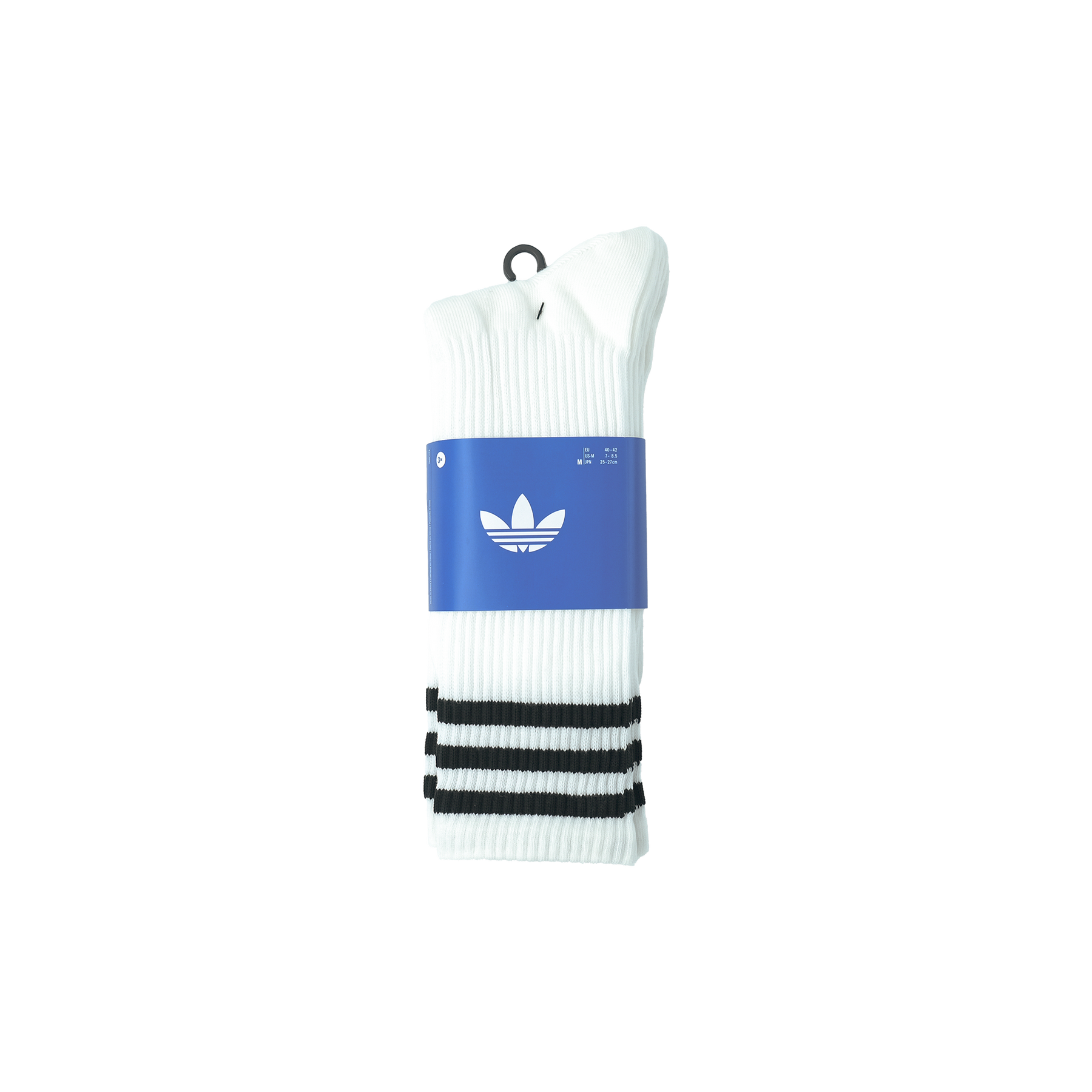 スリーストライプスとトレフォイルロゴをデザインしたハイクルー丈ソックス3足セット。