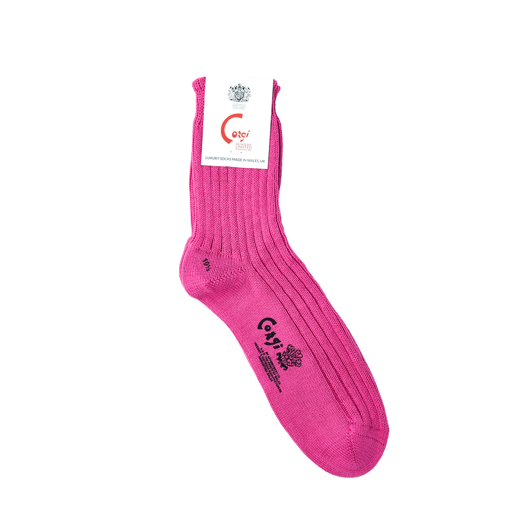 【MENS】SOFT COTTON 5×1 RIB SHORT SOCKS SHOCKING PINK